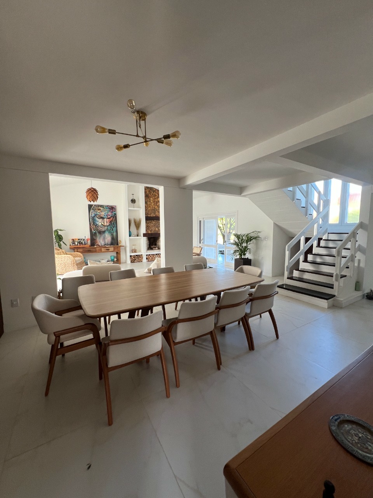Mansão na área mais nobre da praia de Atlântida, em Xangri-Lá/RS, a poucos metros da areia. Região ícone de glamour e prosperidade, na quadra do Caburé, onde segurança e tranquilidade são únicas para moradores e veranistas. A casa de dois andares conta com ampla sala de estar com pé-direito alto, lareira e portas-janelas voltadas para a piscina e o jardim. Sala de jantar com mesa para 10 pessoas e uma confortável sala de TV com 40 m². Lavabo revestido com porcelanato preto. A cozinha é completa, ventilada e iluminada, com acesso à área lateral da casa, que leva à área de serviço, possível dependência e despensa ou depósito. A grande área externa da residência oferece um quiosque com churrasqueira, balcão bar com banquetas altas, mesa para 10 pessoas e uma piscina excepcional com deck elevado para espreguiçadeiras, além de um banheiro e chuveiro externos de apoio. No térreo, são dois dormitórios atendidos por um banheiro comum e uma suíte completa. No segundo andar, há uma suíte master com sacada e vista para o jardim, além de mais um dormitório. A suíte master possui armários integrados e banheiro revestido com porcelanato premium e box de vidro do piso ao teto. Preço e disponibilidade do imóvel sujeitos a alteração sem aviso prévio.