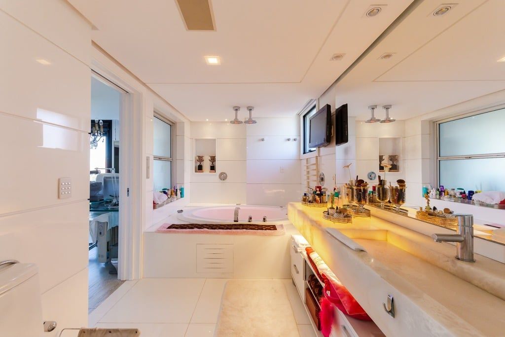 Apresentamos um sofisticado apartamento de 365m² de área privativa nos altos do bairro Bela Vista, com vistas definidas e permanentes. Esta residência de luxo dispõe de quatro suítes e quatro vagas de garagem individuais, proporcionando conforto e exclusividade. Localizado em um andar único com hall e elevador privativos, o apartamento oferece acesso direto a um amplo living voltado para o leste, com uma sacada que proporciona uma vista deslumbrante do pôr do sol sobre o Guaíba e uma linda vista da cidade. O espaço gourmet com churrasqueira, lareira e lavabo complementa este ambiente refinado. A copa-cozinha, equipada com móveis planejados Kitchens, despensa e área de serviço com entrada independente, inclui dormitório e banheiro de serviço. A área íntima é diferenciada, atualmente configurada com três suítes, com opção para uma quarta suíte ou gabinete/home office, além de espaço para uma ampla adega privativa. A suíte master destaca-se com banheiro ele/ela, com jacuzzi, sauna, hidromassagem vertical e pisos aquecidos. Os banheiros e chuveiros possuem cromoterapia, proporcionando um ambiente de bem-estar e relaxamento. O apartamento está equipado com um sistema de automação para cortinas, persianas e iluminação, além de ar condicionado inteligente em todos os ambientes. O empreendimento, Ville de Grasse, é atemporal com uma fachada imponente e revestida, porte-cochère e hall de entrada com pé-direito triplo e acabamentos em mármore. A infraestrutura de luxo inclui espaço gourmet com churrasqueira, salão de festas com cozinha gourmet, sala de cinema equipada, adega climatizada com espaço individual para cada morador, duas academias, sauna, piscina externa aquecida, espaço para jogos, lounge, sala de motorista, estacionamento para visitantes e gerador para áreas comuns e unidades autônomas. A segurança é reforçada com guarita blindada, entradas de veículos individualizadas para moradores e visitantes com sistema de clausura, e portaria 24 horas. Situado no centro do bairro Bela Vista, o Ville de Grasse oferece muita luminosidade, privacidade e conforto aos seus privilegiados moradores. Agende sua visita e descubra a experiência de viver neste condomínio exclusivo. Preço e disponibilidade do imóvel sujeitos a alteração sem aviso prévio.