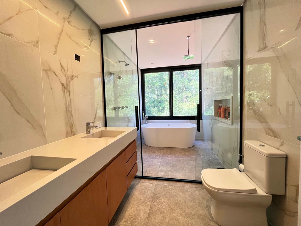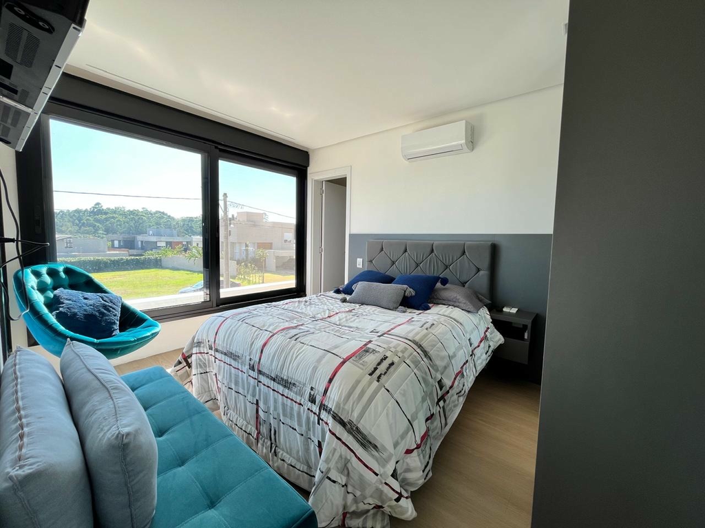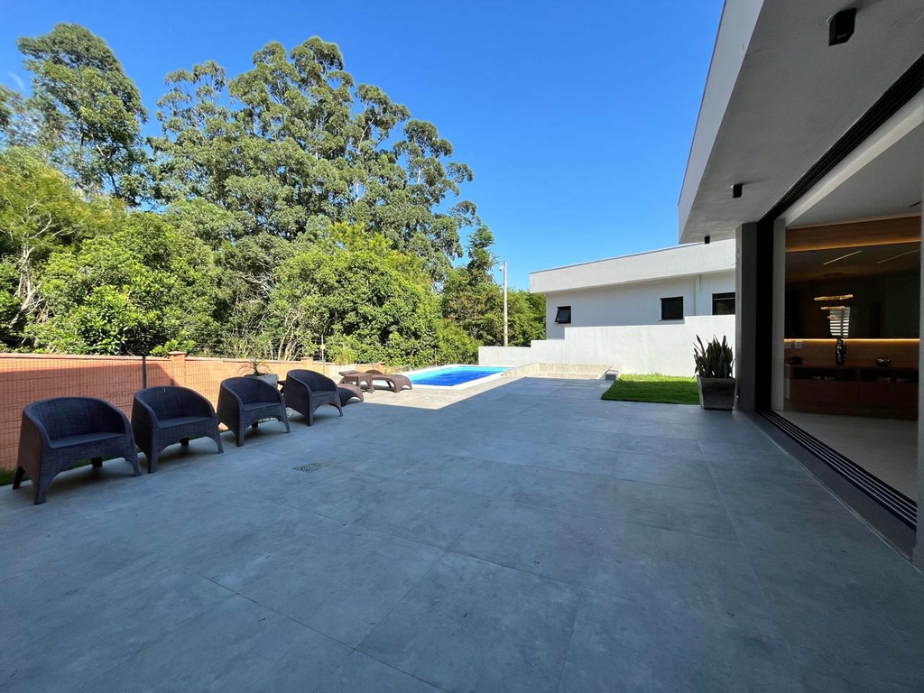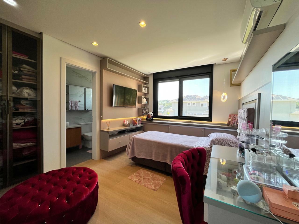 Ampla casa de 2 pavimentos, com ambientes integrados proporcionando mais conforto e privacidade. No segundo andar: 4 suítes, sendo a principal o grande destaque com seu closet e banheiro luxuosos, incluindo banheira e chuveiros para casal. Terraço com vista privilegiada e grama sintética. No primeiro andar: Living com pé direito alto, lareira a lenha e álcool para aquecer nos dias frios., e, cozinha completa com ilha. Lavabo. Conta ainda com 1 dormitório no térreo (que pode ser transformado em escritório). Área de lazer privativa: Espaço gourmet com churrasqueira, piscina com aquecimento solar, proporcionando mais conforto. e banheiro para área externa,um ambiente pensado para desfrutar e receber amigos e familiares. Fundos da casa para área de preservação permanente (APP), ou seja, sua privacidade é preservada com uma vista deslumbrante para a natureza. Casa com arquitetura espetacular, muita luz natural e com o moderno sistema de aquecimento solar. Garagem para 4 automóveis sendo 2 na parte coberta, já possui o sistema de carregador para automóvel elétrico. Viva com elegância no condomínio Alphaville Veneto localizado na Zona Sul de Porto Alegre/RS. Condomínio com Infraestrutura completa: Segurança 24h, quadra de tênis, beach tênis, playground, trilhas, salão de festas, espaço kids, sala fitness, piscina coletiva infantil e adulto (que é coberta durante o inverno, para garantir conforto térmico). Agende uma visita e venha conhecer seu novo lar! Preço e disponibilidade do imóvel sujeitos a alteração sem aviso prévio.