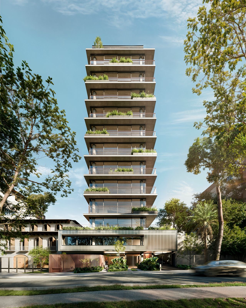 Edifício de alto padrão com um apartamento por andar situado em frente a uma praça. Preço e disponibilidade do imóvel sujeitos a alteração sem aviso prévio.