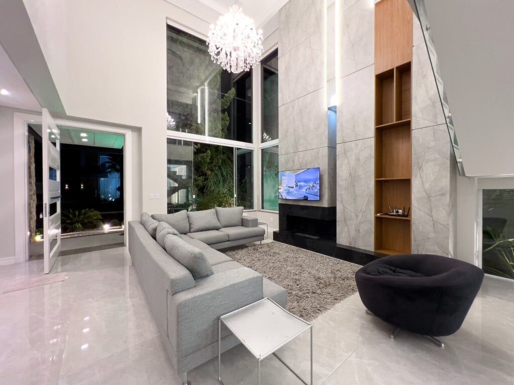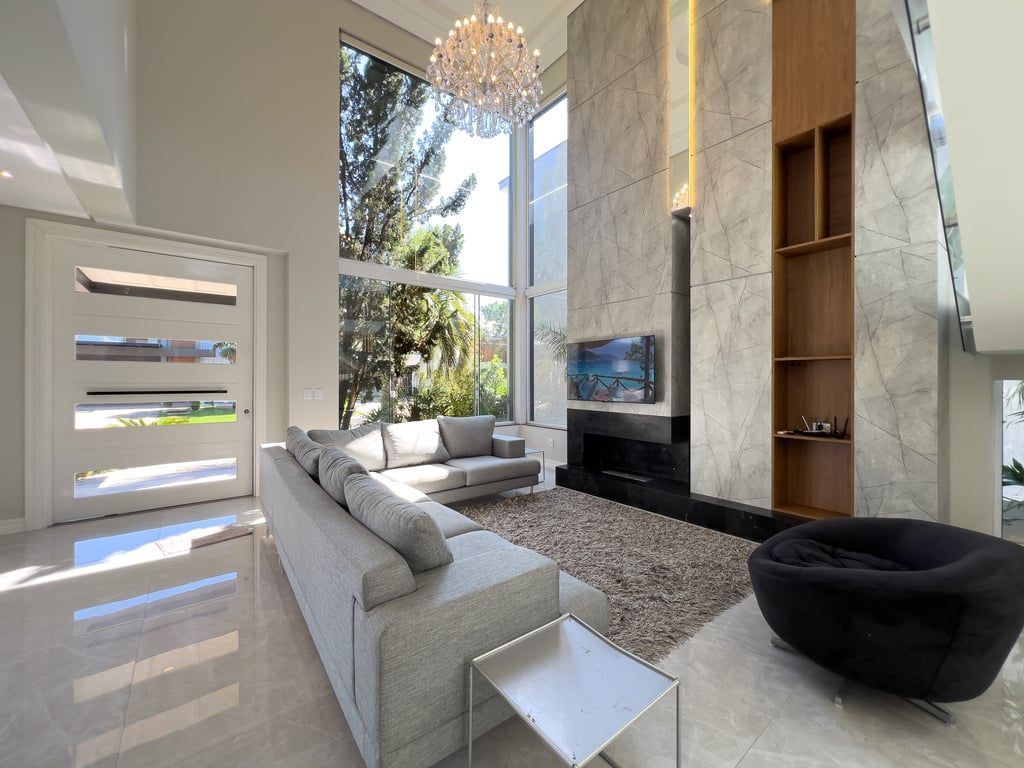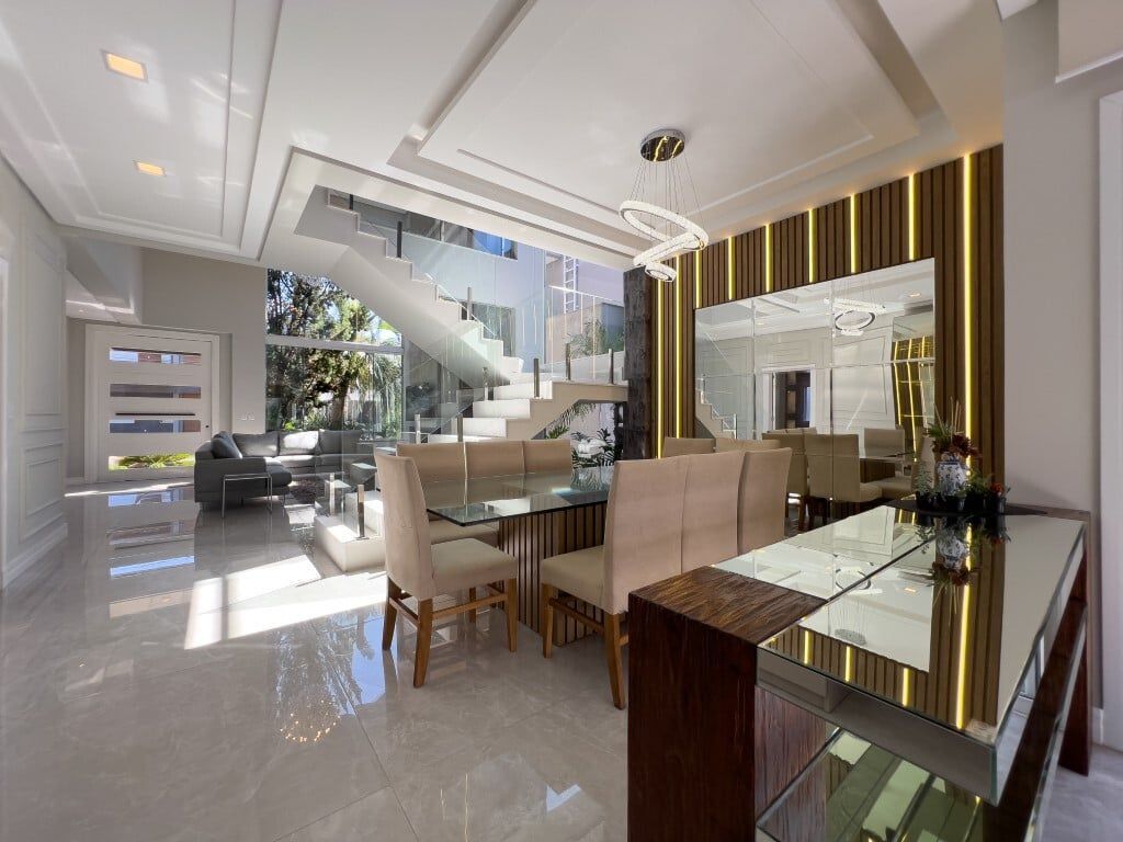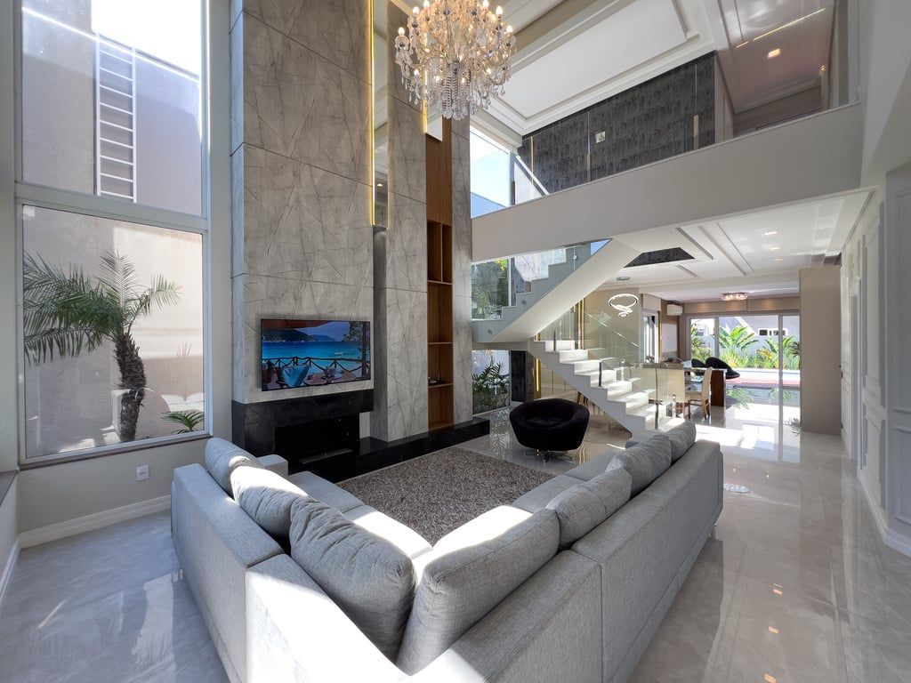 Sobrado espetacular mobiliado e equipado com 336m² construídos, de 4 dormitórios, sendo 2 suítes e espaço de estacionamento para 4 carros. No térreo possui amplo living para 3 ambientes, com pé direito duplo, lavabo, uma suíte completa, cozinha americana com móveis sob medida e churrasqueira, jardim paisagismo e linda iluminação, piscina em concreto com deck, lavanderia separada e dependência de empregada com banheiro auxiliar. Escada com corrimão de vidro que nos leva para o segundo andar, com 3 amplos dormitórios, sendo 1 suíte com sacada, banheiro social e uma sacada fechada com vidro, com deck e uma jacuzzi/SPA. Garagem coberta para 2 carros + 2 carros descoberta. Preço e disponibilidade do imóvel sujeitos a alteração sem aviso prévio.