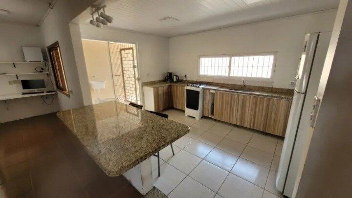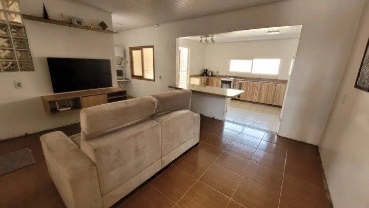 Casa com 3 dormitórios (sendo 1 c/Suíte), 2 vagas de estacionamento cobertas, no bairro Jardim Algarve, em Alvorada, com 90m2 privativos (175m2 totais), completamente mobiliada, com móveis planejados, geladeira, fogão, ampla sala com living para 2 ambientes em conceito aberto, aquecedor a gás instalado, ar-condicionado, piso laminado, banheiro social e banheiro da suíte com armários e box em vidro, pátio na parte de trás com muro. Imóvel reformado há 3 anos, todas elétrica e hidráulica revisada.