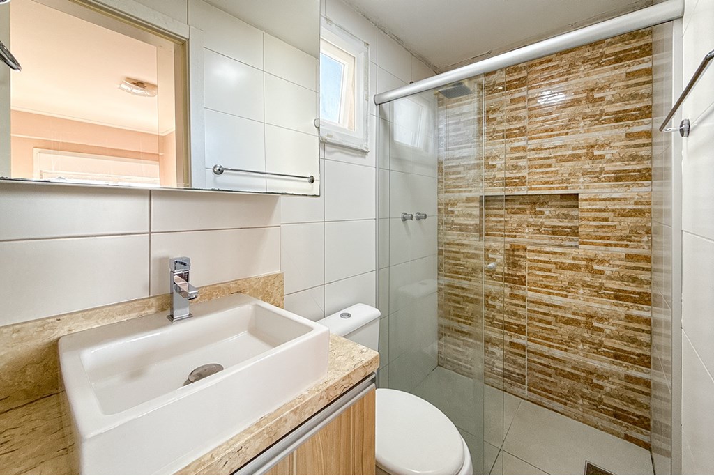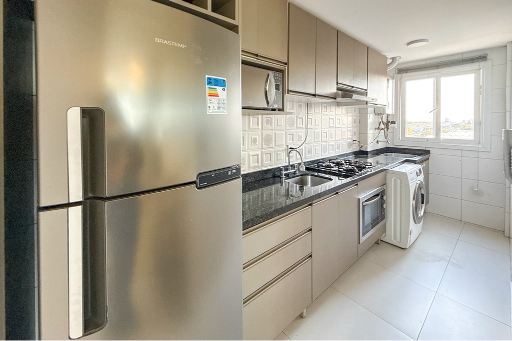 Apartamento em Canoas no bairro Niterói com 60,44 m2 de área construída e útil em condomínio fechado moderno que garante conforto e praticidade. São 2 quartos e 2 banheiros no 5º andar com vista aberta para o norte. O imóvel conta com sala bem distribuída cozinha espaçosa com armários embutidos varanda com churrasqueira e espaço gourmet além de salão de festas. Dispõe de 1 vaga de estacionamento armários embutidos coleta seletiva de lixo e está em ótimas condições. O condomínio oferece segurança com zelador interfone e portaria além de acessibilidade com elevador e adaptação para cadeiras de rodas permitindo também animais de estimação. Localização estratégica com acesso facilitado à rodovia próximo a escolas igrejas paradas de ônibus parques e a poucos minutos do metrô em rua tranquila e asfaltada. Imóvel pronto para morar aceita financiamento e reúne comodidade qualidade de vida e aconchego. Preço e disponibilidade do imóvel sujeitos a alteração sem aviso prévio.