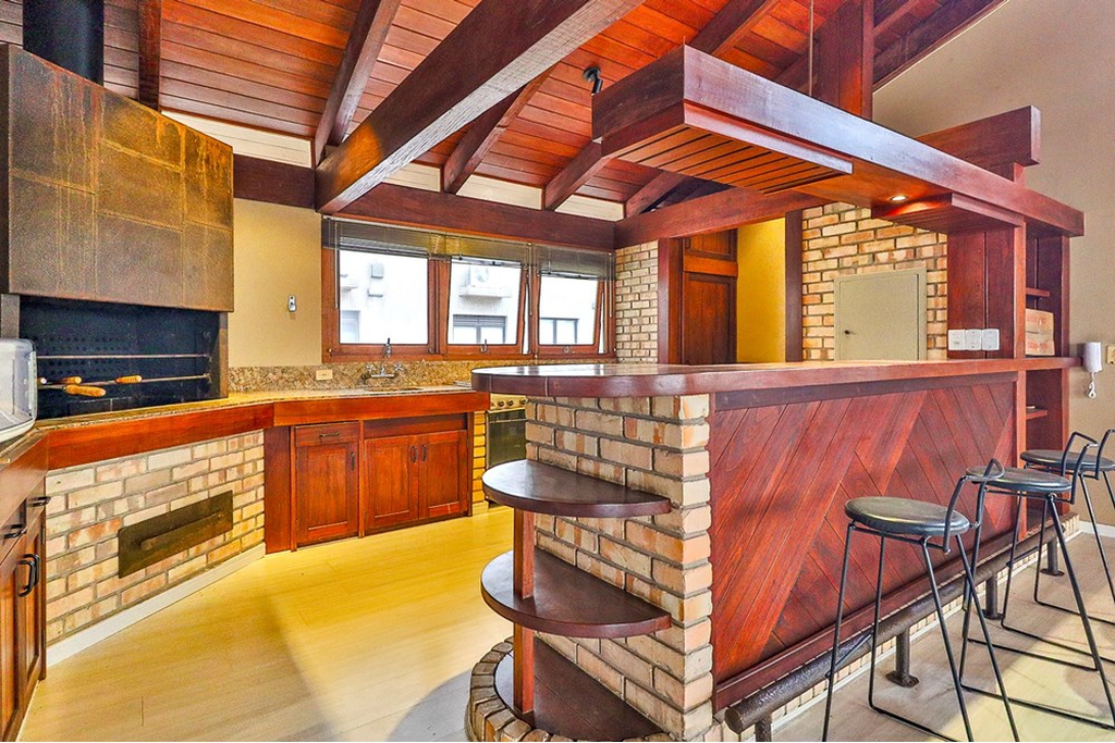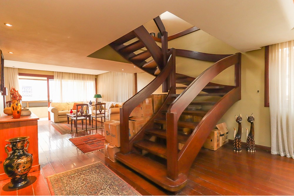 Cobertura com cara de casa em bairro nobre de Porto Alegre, em edifício pequeno com apenas 3 moradores, elevador, gás central e vídeo porteiro controlado pela TV ou celular. O imóvel oferece muito espaço social com living em tabuão com lareira e varanda, cozinha ampla com mesa de refeições, lavanderia e dependência completa, além de 4 dormitórios amplos, incluindo suíte com closet e espaçoso quarto de banho. A escada em madeira nobre de dois lances é um destaque arquitetônico e de design. A parte superior lembra uma casa da Serra, com detalhes em madeira de lei, 2 terraços sendo um frontal com jacuzzi e outro maior com lavanderia e banheiro de apoio, além de salão de festas com vários layouts, bar em madeira com cozinha americana, churrasqueira com acabamento exclusivo, lareira e mais um ambiente que pode ser utilizado como 5º dormitório, escritório, academia ou atelier. Conta ainda com garagem para 2 veículos grandes, depósito e acessibilidade para cadeirante. O condomínio fechado garante segurança e privacidade, com câmeras de vigilância e interfone. Localização privilegiada próxima ao Grêmio Náutico União, Zaffari da Carazinho, academias, armazéns, padarias, pet shops e avenidas Carlos Gomes e Protásio, reunindo praticidade, exclusividade e bem-estar em um imóvel único. Preço e disponibilidade do imóvel sujeitos a alteração sem aviso prévio.