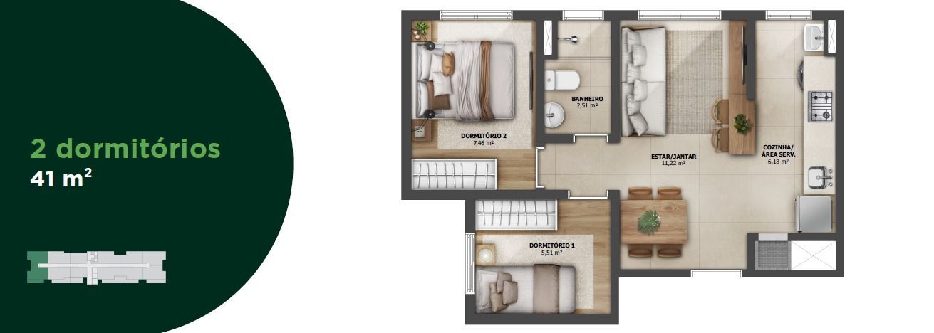Apartamentos de 1, 2 e 3 dormitórios, todos com churrasqueira privativa e uma infraestrutura de clube para você aproveitar ao máximo.