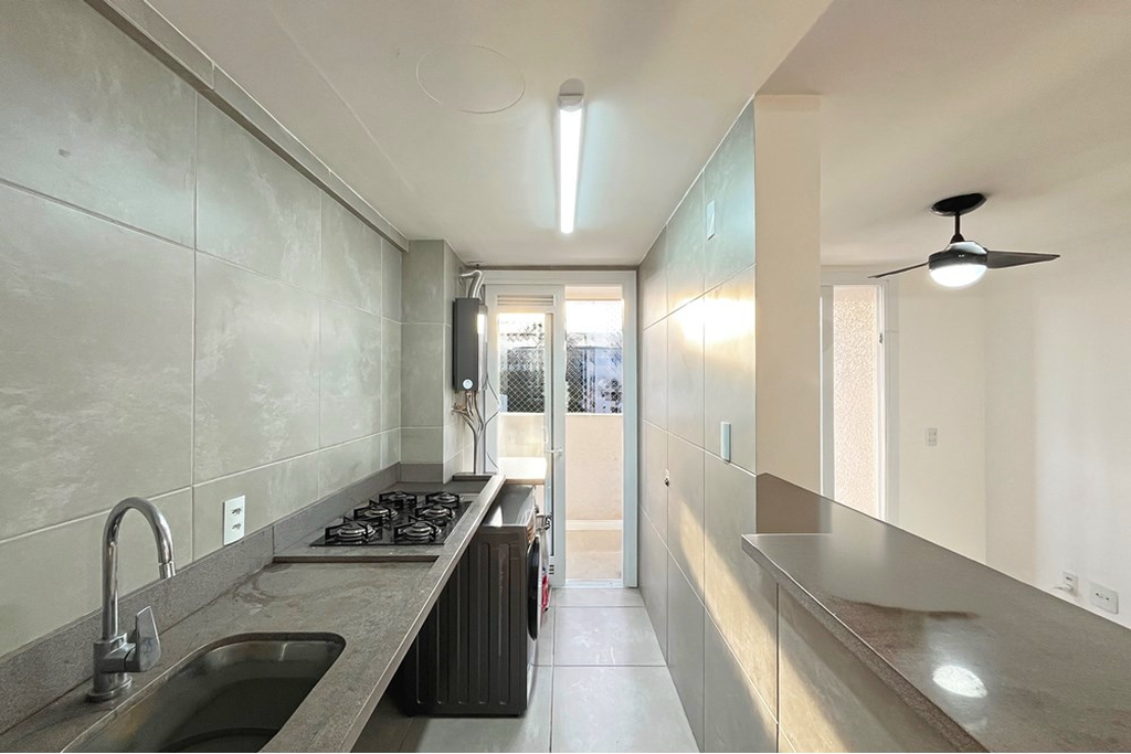 Bloco único com apenas 28 unidades no condomínio, localizado no 8° Andar com elevador, Apartamento com 2 dormitorios um banheiro , cozinha americana com cooktop, e balcão de pedra , área de serviço integrada com a cozinha, um diferencial que possui coletor de óleo, sacada com churrasqueira e uma vista incrível para o shopping Bourbon, living para os dois ambientes. Vaga coberta, o condomínio possui Biblicletario e uma lavanderia coletiva e praticidade de portaria Virtual para facilitar o dia a dia.