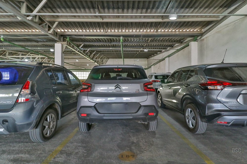 A vaga de garagem coberta.