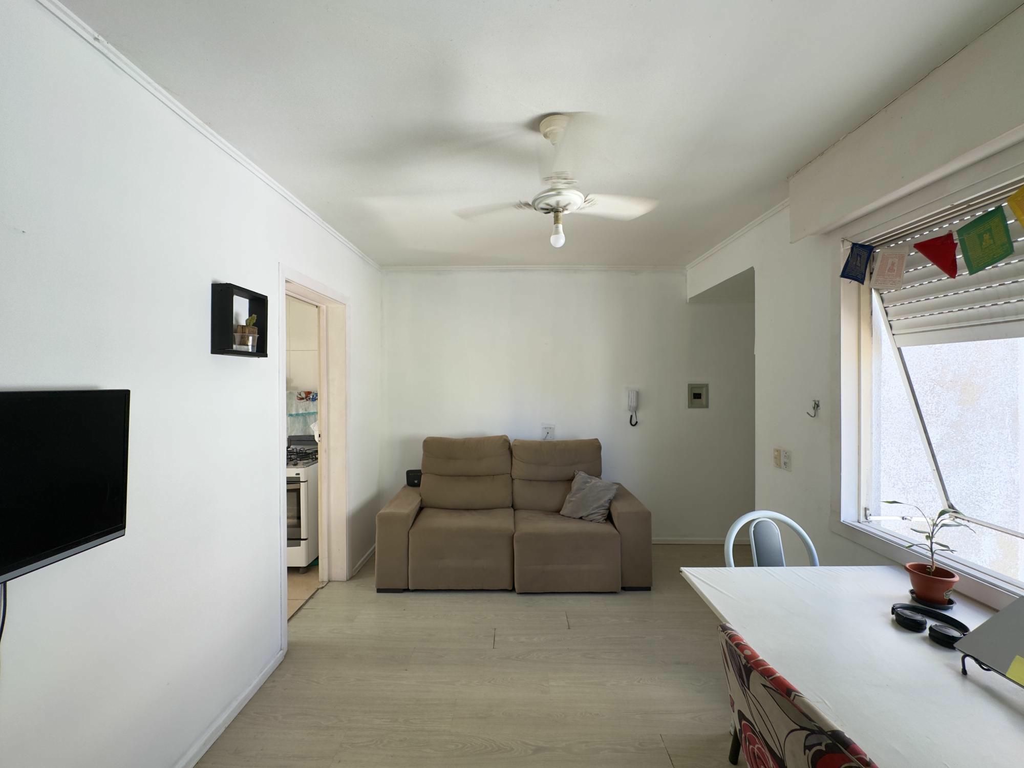 Apartamento de 40 m², 1 dormitório living para dois ambientes, cozinha, área de serviço separada e 1 banheiro. Disposto em andar alto, com vista definida e super bem iluminado e ventilado.