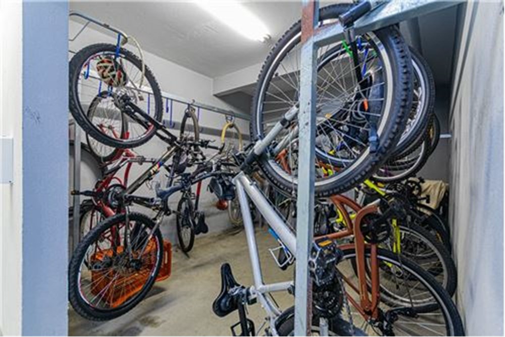 Bicicletário e hall decorado