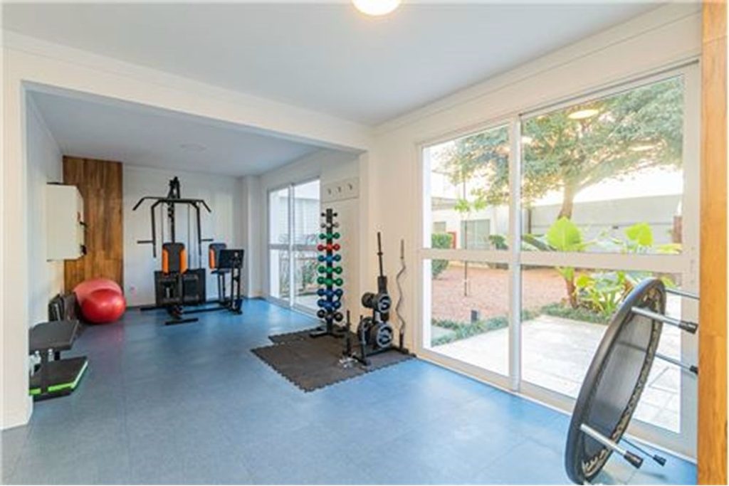 Academia equipada e espaço relax