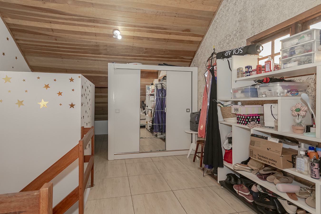 Um dos grandes diferenciais deste sobrado é o sótão versátil, que pode ser facilmente adaptado para um terceiro dormitório ou um home office, conforme a sua necessidade. Além disso, a frente da casa oferece espaço privativo para o estacionamento de dois carros.