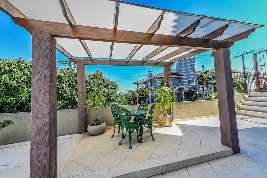 - Pátio com piscina e quiosque, garagem coberta para 2 carros e descoberta para mais 2.