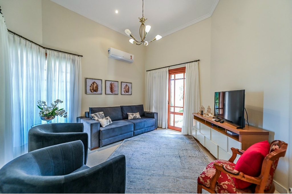 *Sustentabilidade*: A casa conta com placas de energia solar para a casa e piscina, promovendo economia, além de um sistema de aquecimento a gás que fornece água quente em todos os ambientes.