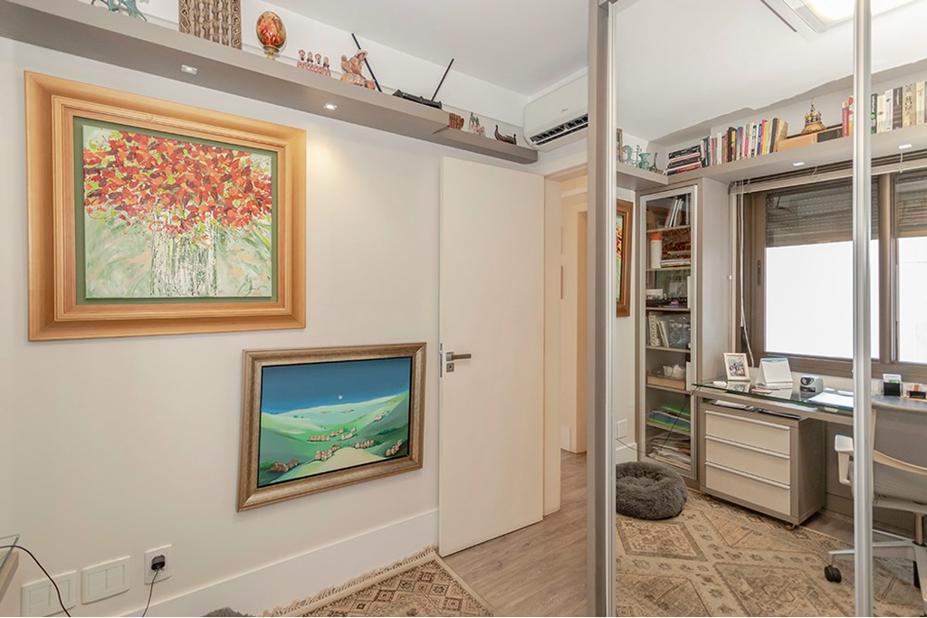 Dentro desse refúgio contemporâneo, você encontrará um acolhedor lar mobiliado com armários embutidos, cozinha planejada, closet espaçoso na suite, além de sala com lareira e home theater para entretenimento de toda a família. O espaço gourmet e a varanda são perfeitos para receber amigos e relaxar. Escritório completo montado.
