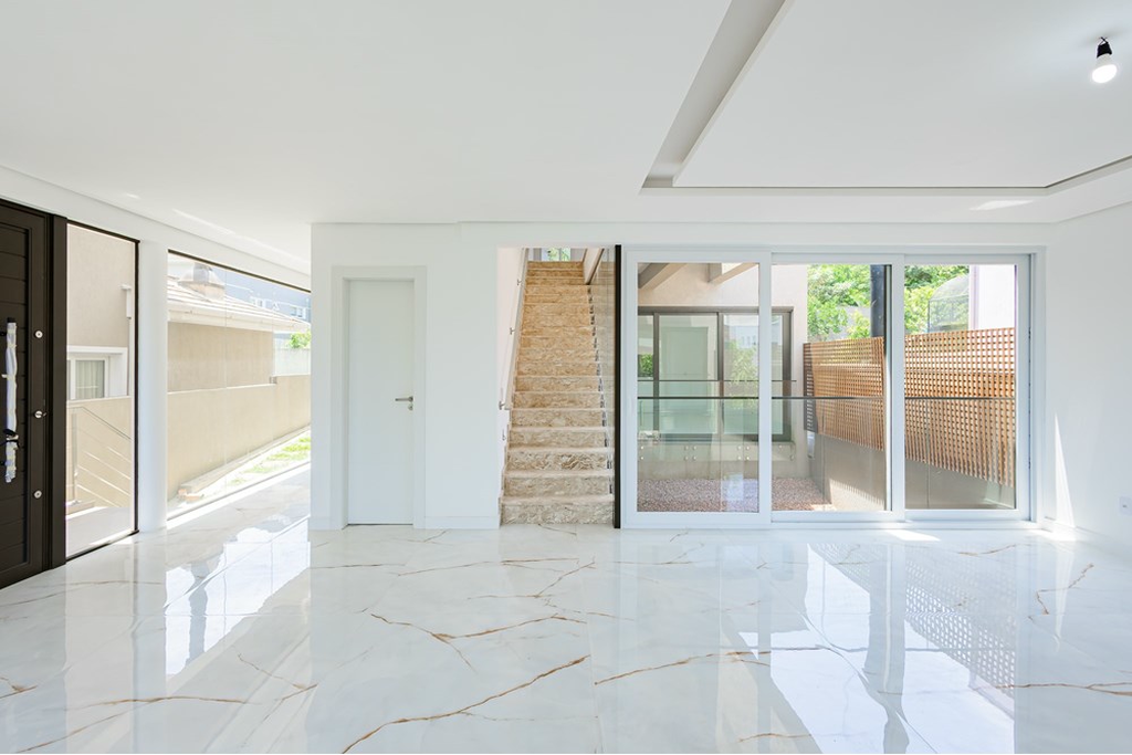 Projetada com atenção minuciosa aos detalhes, esta casa apresenta materiais de alto padrão, como porcelanatos, pedras naturais e esquadrias de excelente qualidade. Seu projeto moderno prioriza iluminação natural, proporções equilibradas e uma composição de texturas que valorizam a fachada. As amplas aberturas garantem integração visual com o exterior e reforçam a sensação de amplitude.