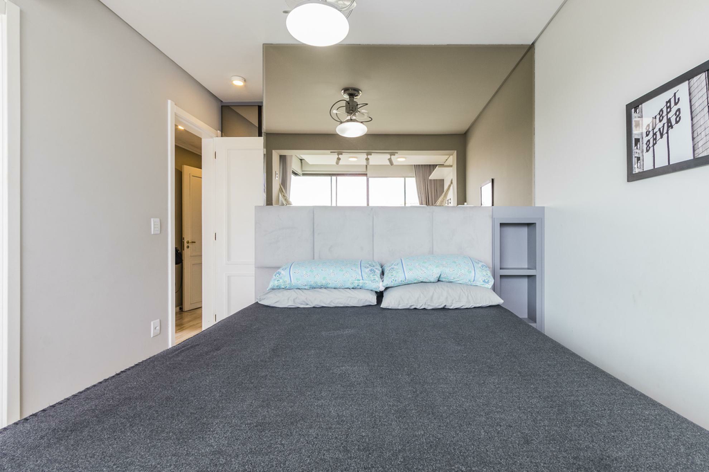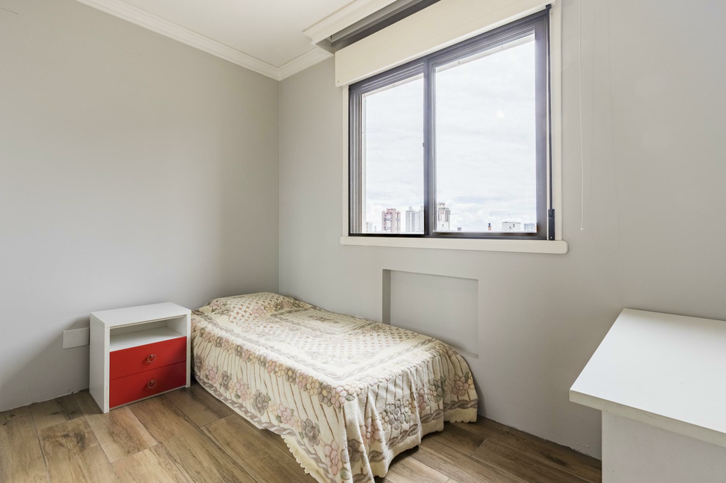 O living é amplo, com lareira e lavabo, perfeito para reunir a família em todas as estações. O apartamento é semi-mobiliado e permanecem os móveis planejados e os eletros fixos, incluindo ar-condicionado, ventilador, forno, cooktop e coifa, oferecendo praticidade desde o primeiro dia.