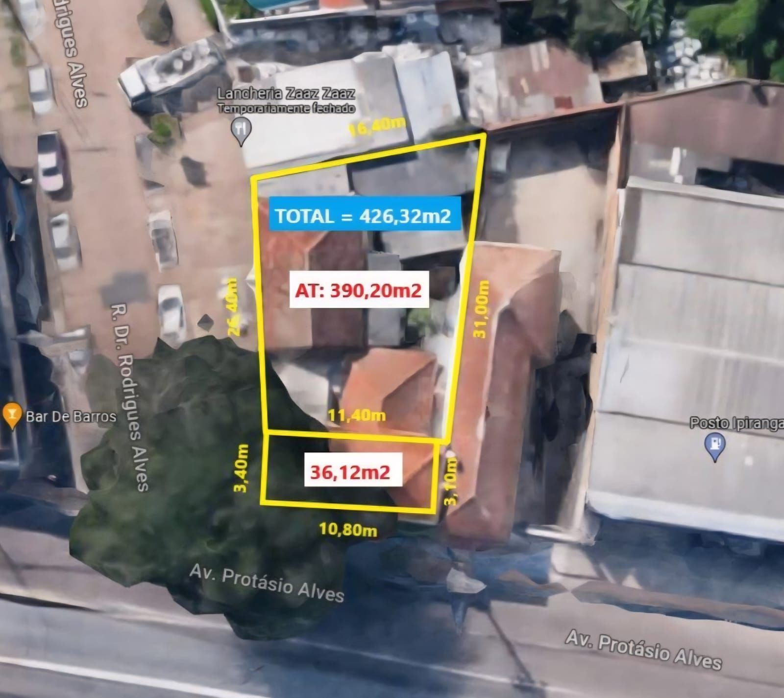 Terreno comercial de esquina com 426 m², oferecendo excelente visibilidade e alto fluxo de veículos e pedestres — ideal para quem busca destaque e valorização do negócio.