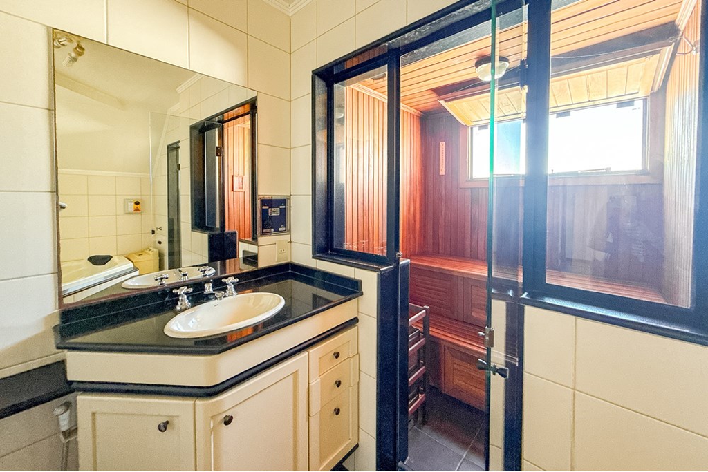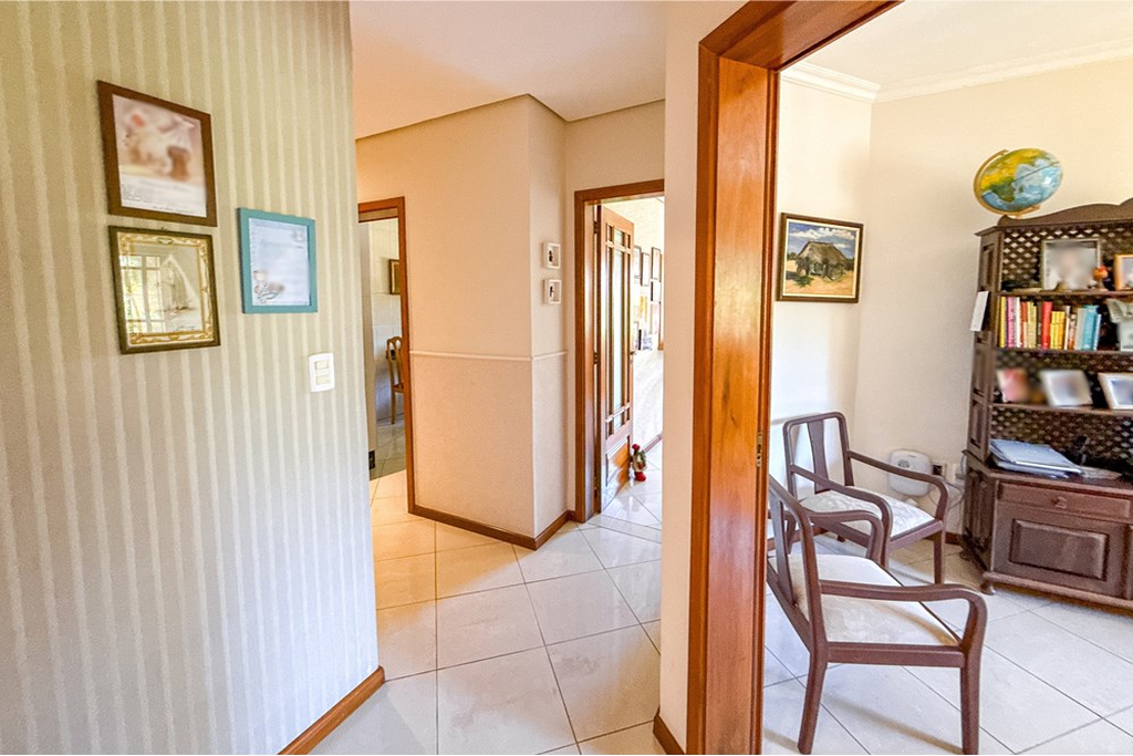 Luxuosa residência com ampla distribuição, perfeita para quem valoriza conforto e privacidade. Com seis dormitórios, incluindo uma suíte master térrea com hidromassagem e closet, além de um sótão multifuncional com lareira, espaço fitness, sauna e área de relaxamento. A área externa encanta com piscina, salão de festas, espaço gourmet, hortinha e pergolado, ideal para convivência. Localização tranquila ao lado de uma praça arborizada, garantindo segurança e estilo de vida completo. Preço e disponibilidade do imóvel sujeitos a alteração sem aviso prévio.