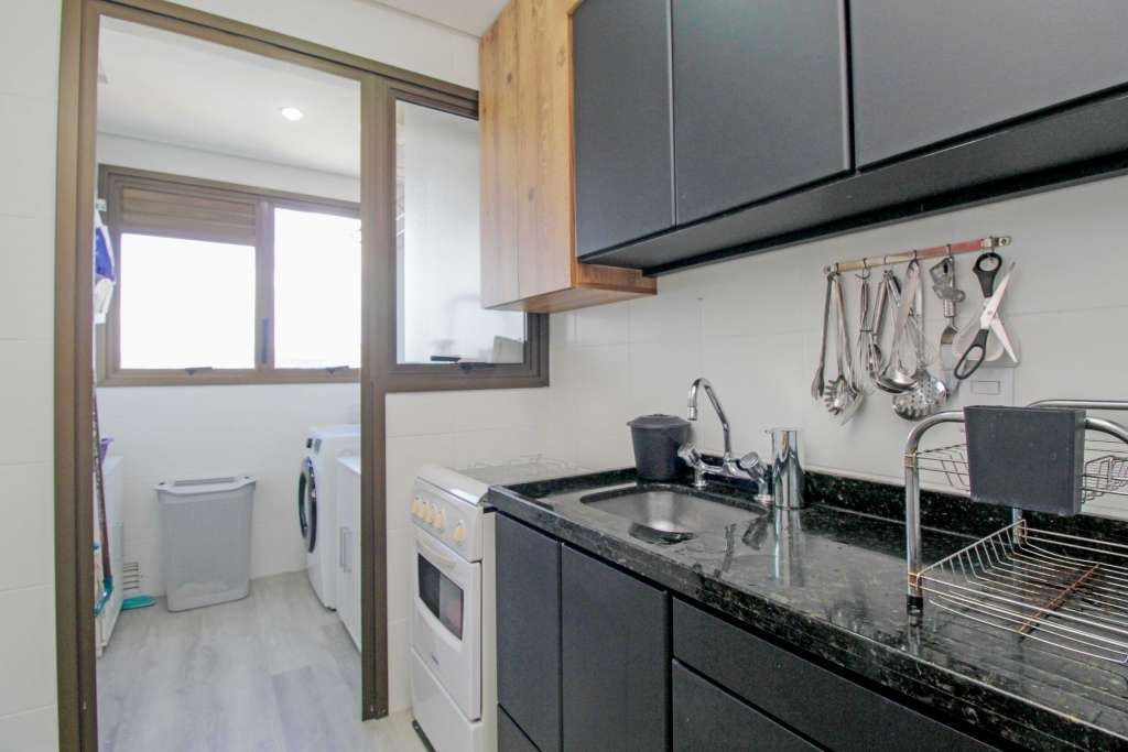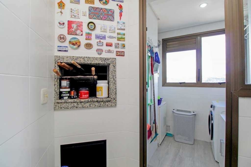 A cozinha se destaca pelos móveis sob medida e pela churrasqueira, criando o ambiente perfeito para receber amigos e familiares com praticidade e integração. A área de serviço é separada, garantindo ainda mais funcionalidade.