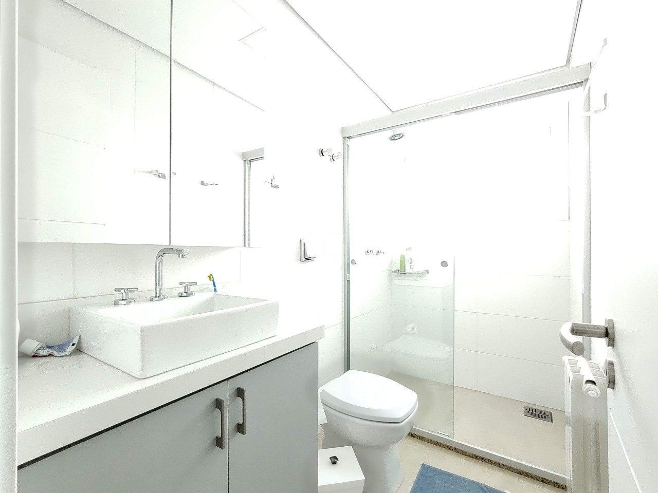 Área íntima com calefação e aquecimento nos pisos dos banheiros, espera para o radiador na sala.
