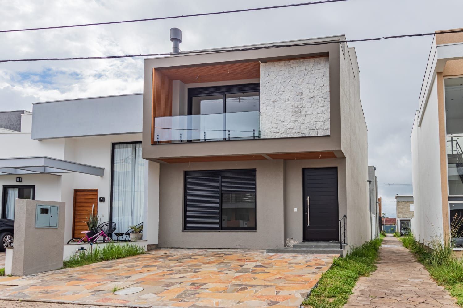 Ótimo Sobrado com 180 m²em fase de acabamento. Possui 03 suítes . Living 02 ambientes com lareira, cozinha em conceito aberto, varanda com churrasqueira, lavabo, área de serviço e pátio.
