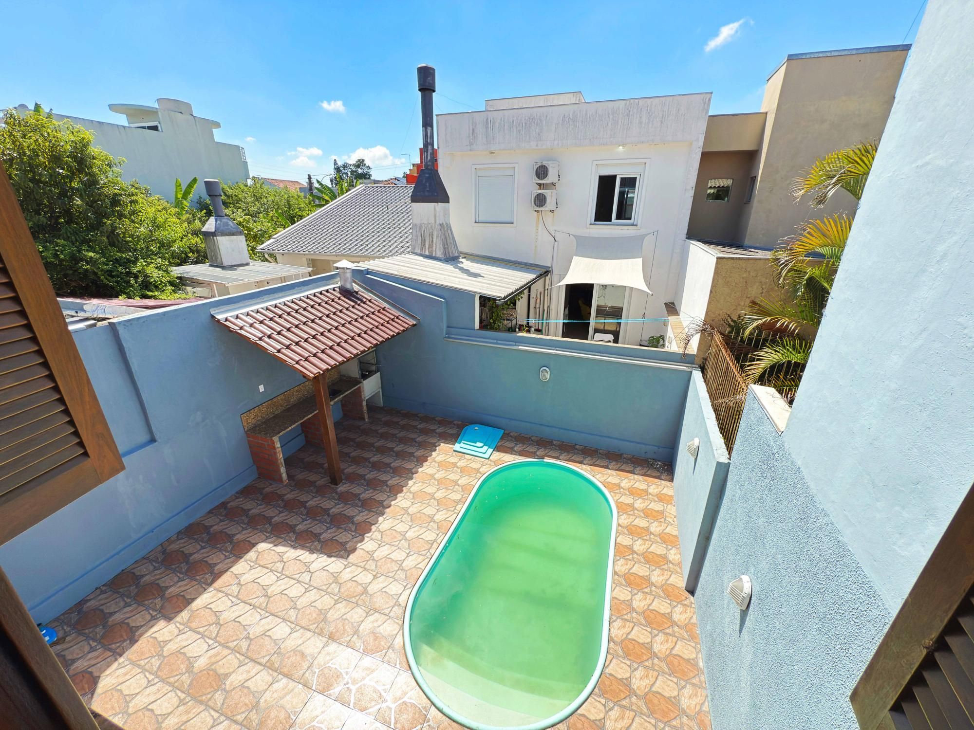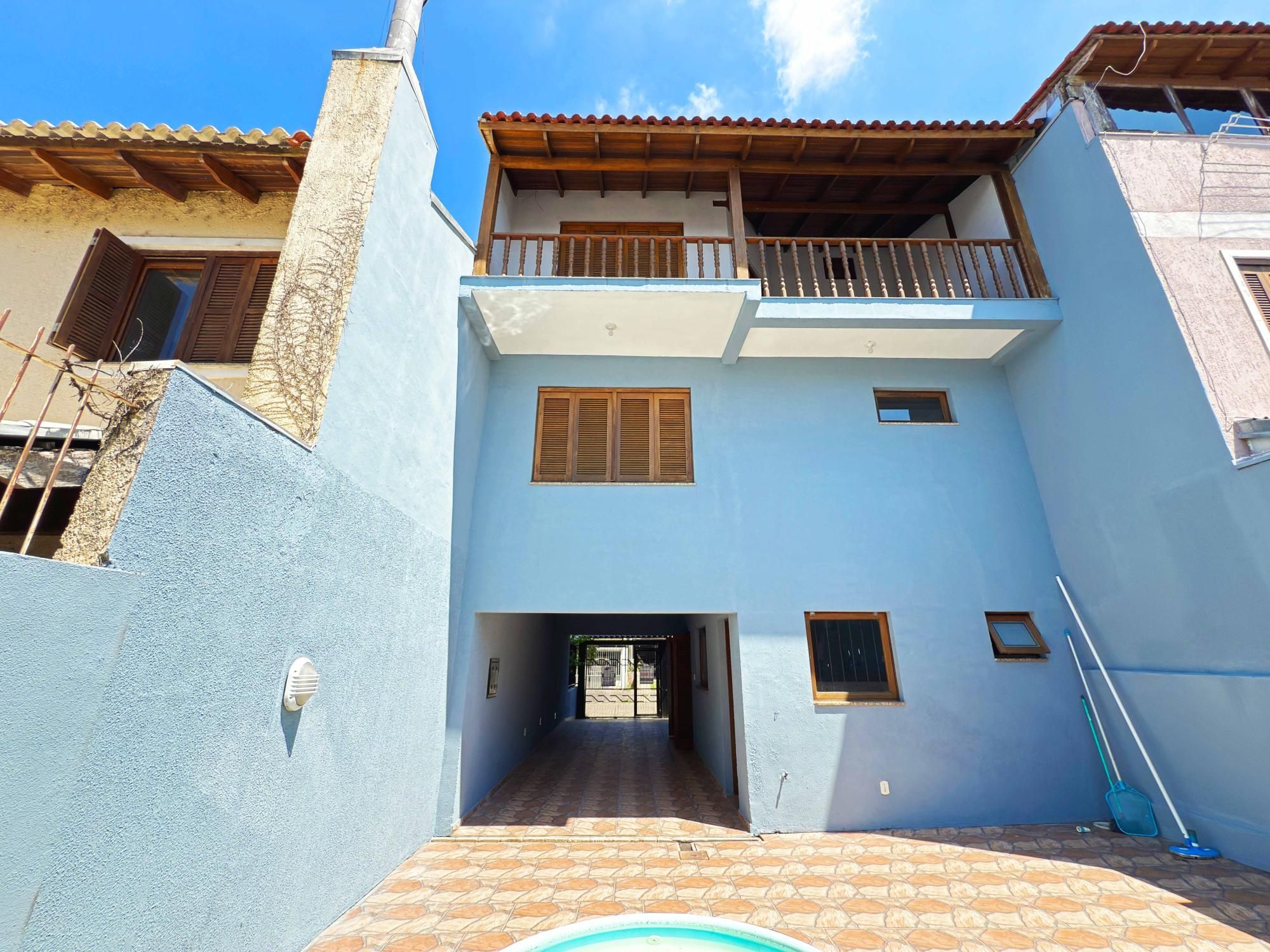 Sobrado a venda no bairro Hípica, com 208,33 m² de área construída, composto por 2 suítes, sendo 1 suíte com closet, além de estar íntimo reversível para terceiro quarto. Cozinha ampla, lavanderia funcional, piscina e garagem coberta para 2 veículos, com imóvel totalmente gradeado.