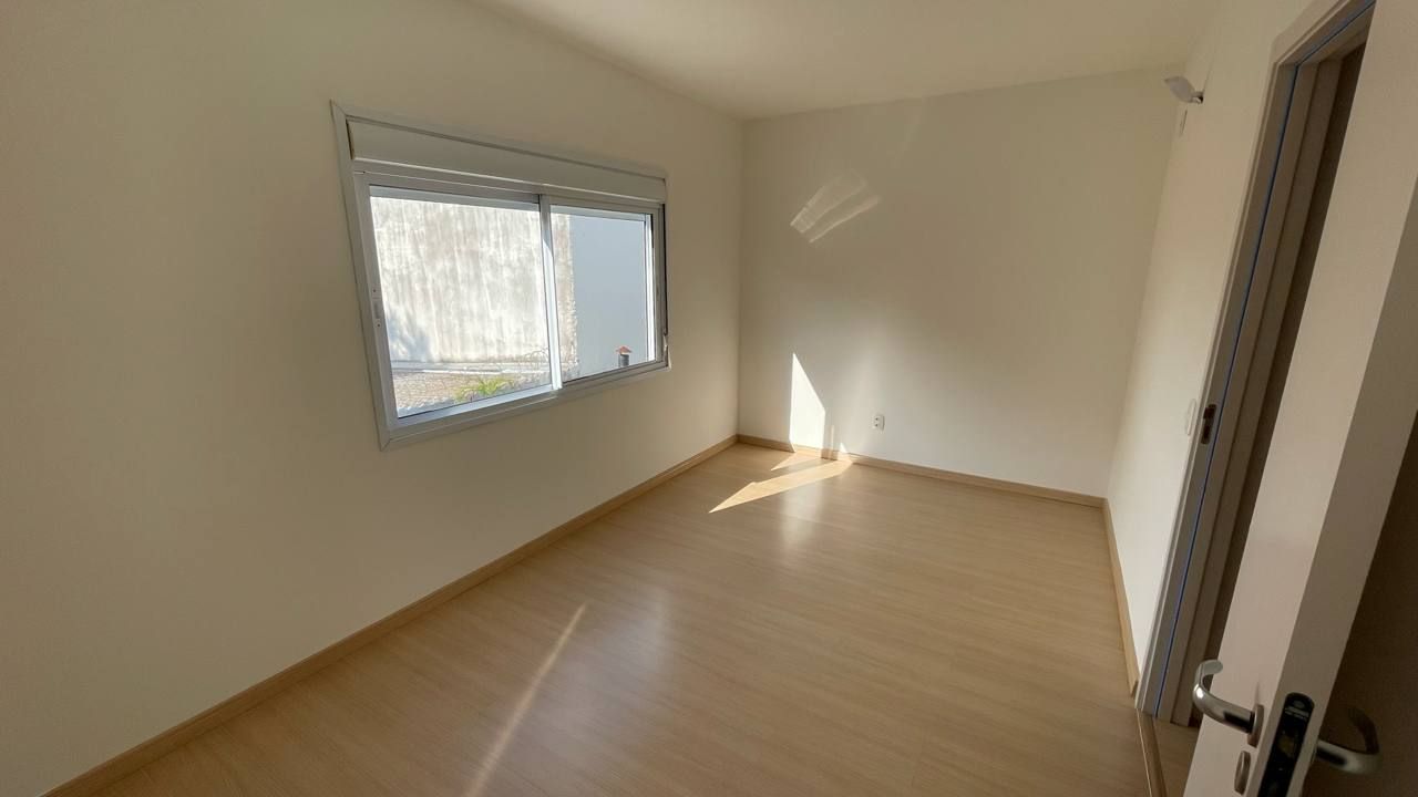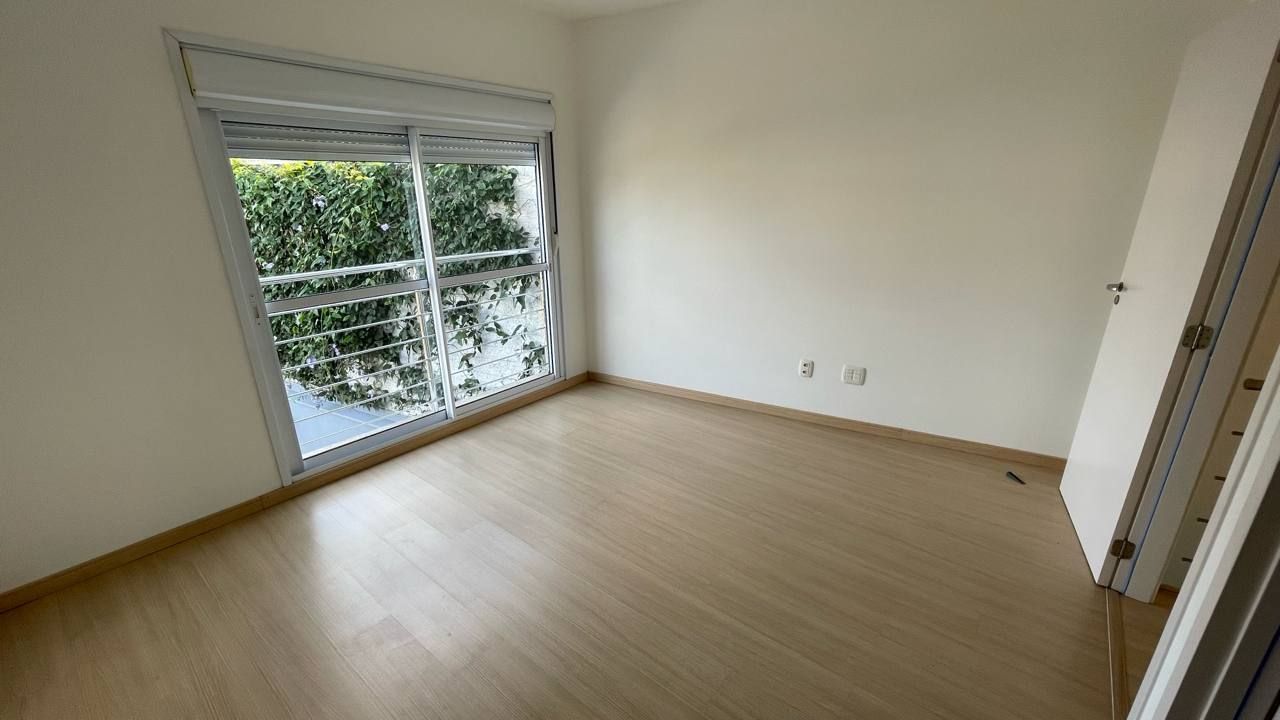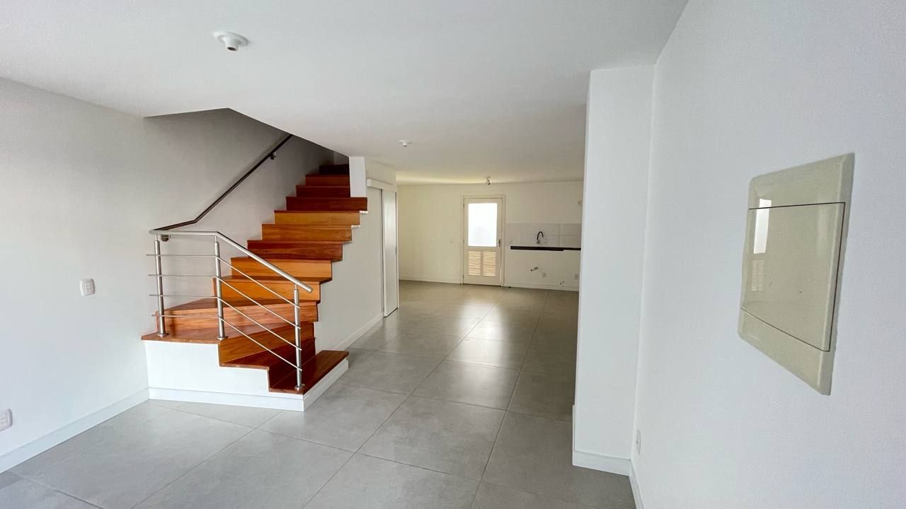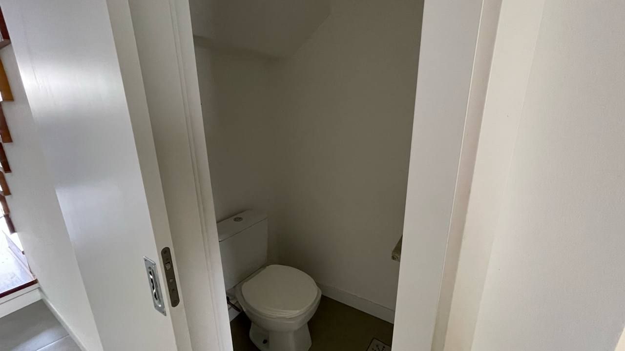 O imóvel possui dois dormitórios, sendo um deles suíte, além de um lavabo no pavimento inferior para maior praticidade. O acabamento é impecável, com porcelanato no térreo e piso laminado de madeira no segundo pavimento, garantindo elegância e conforto térmico.