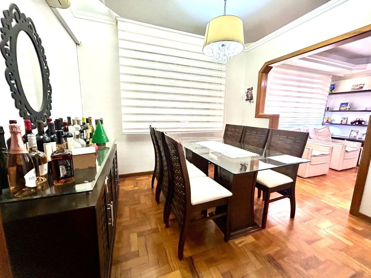 Living acolhedor, com espaço para estar e jantar