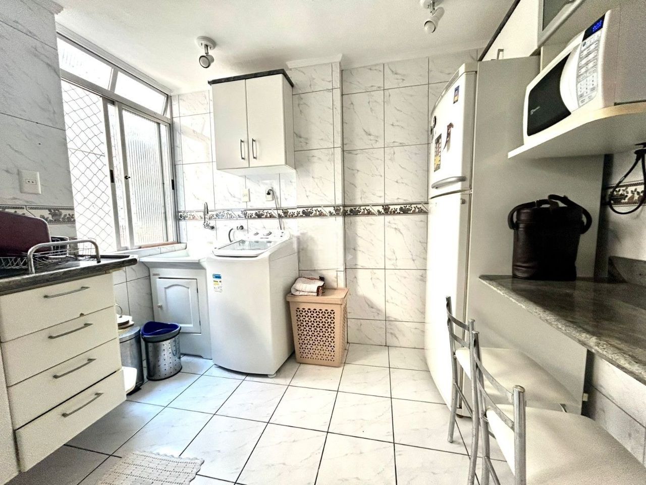 A cozinha conta com móveis sob medida, garantindo melhor aproveitamento do espaço e mais praticidade na rotina.