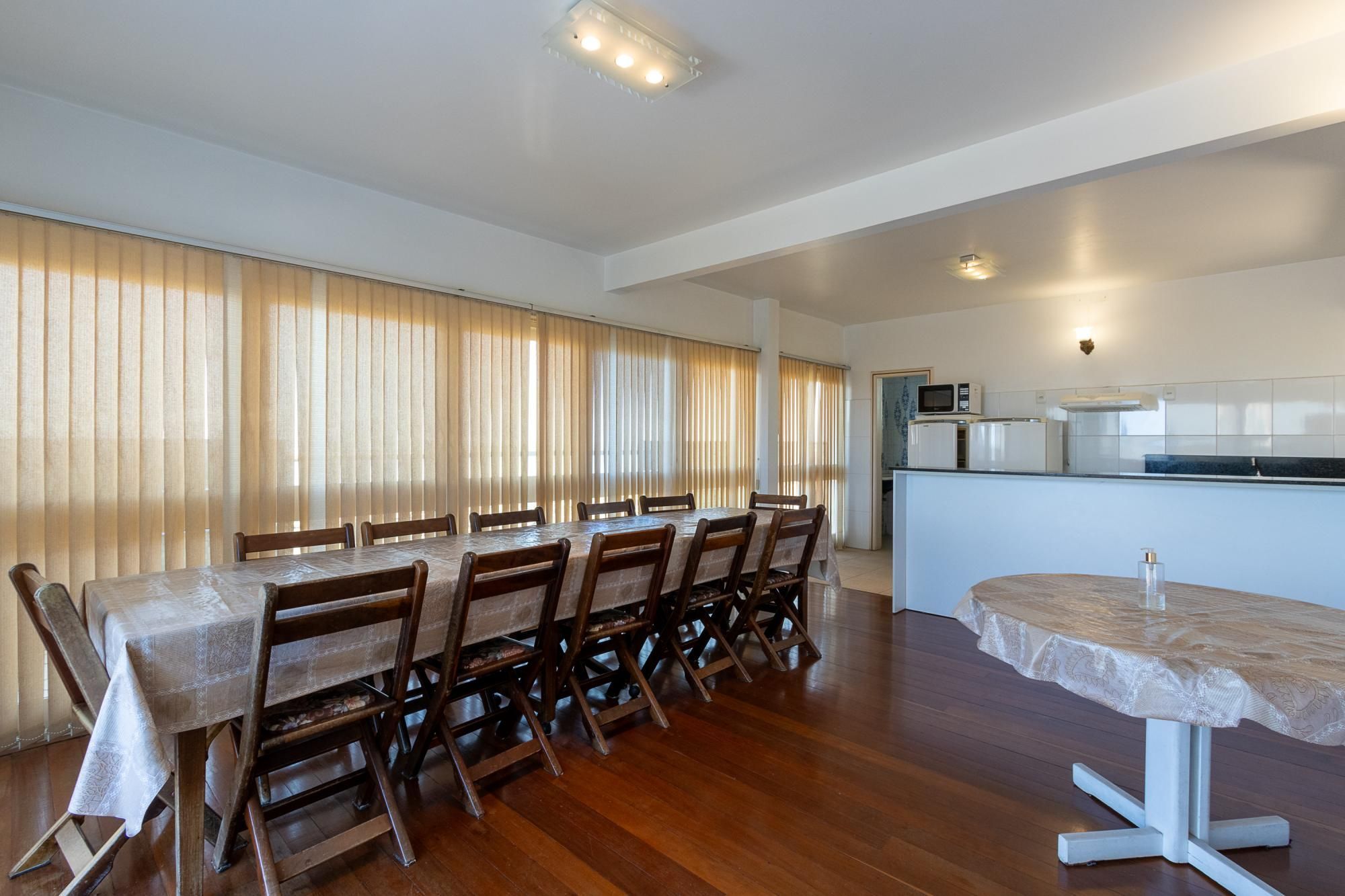 O edifício possui um salão de festas no 9° andar com uma área de 260 mq, sendo 70% coberta com toda a infraestrutura como, fogão a gás, microondas, geladeira, freezer, churrasqueira, mesas e cadeiras para servir, toda a louça, talheres, copos, cálices completos, espetos, facas para churrasqueiro, enfim, para fazer um churrasco basta levar a carne, o sal e o carvão.