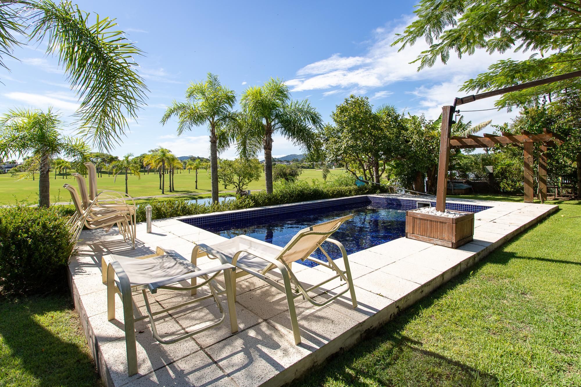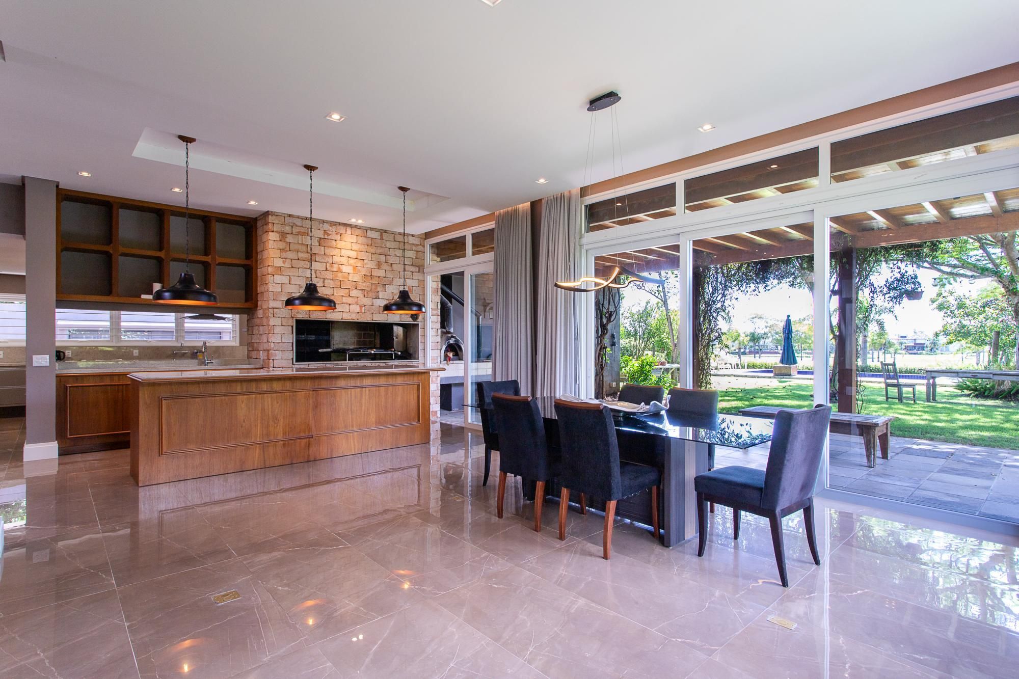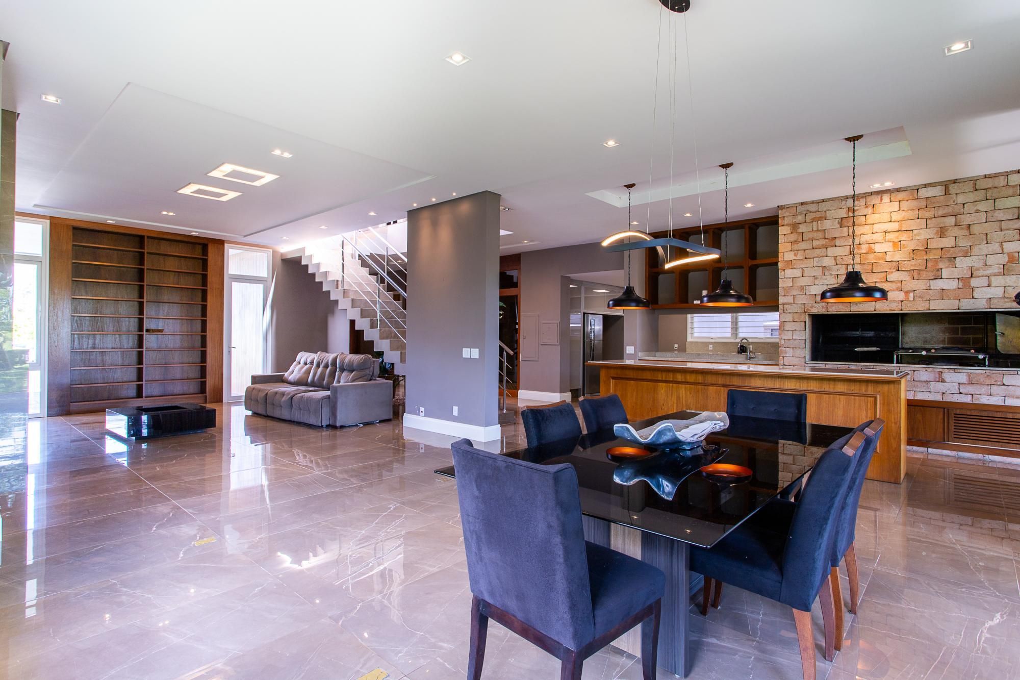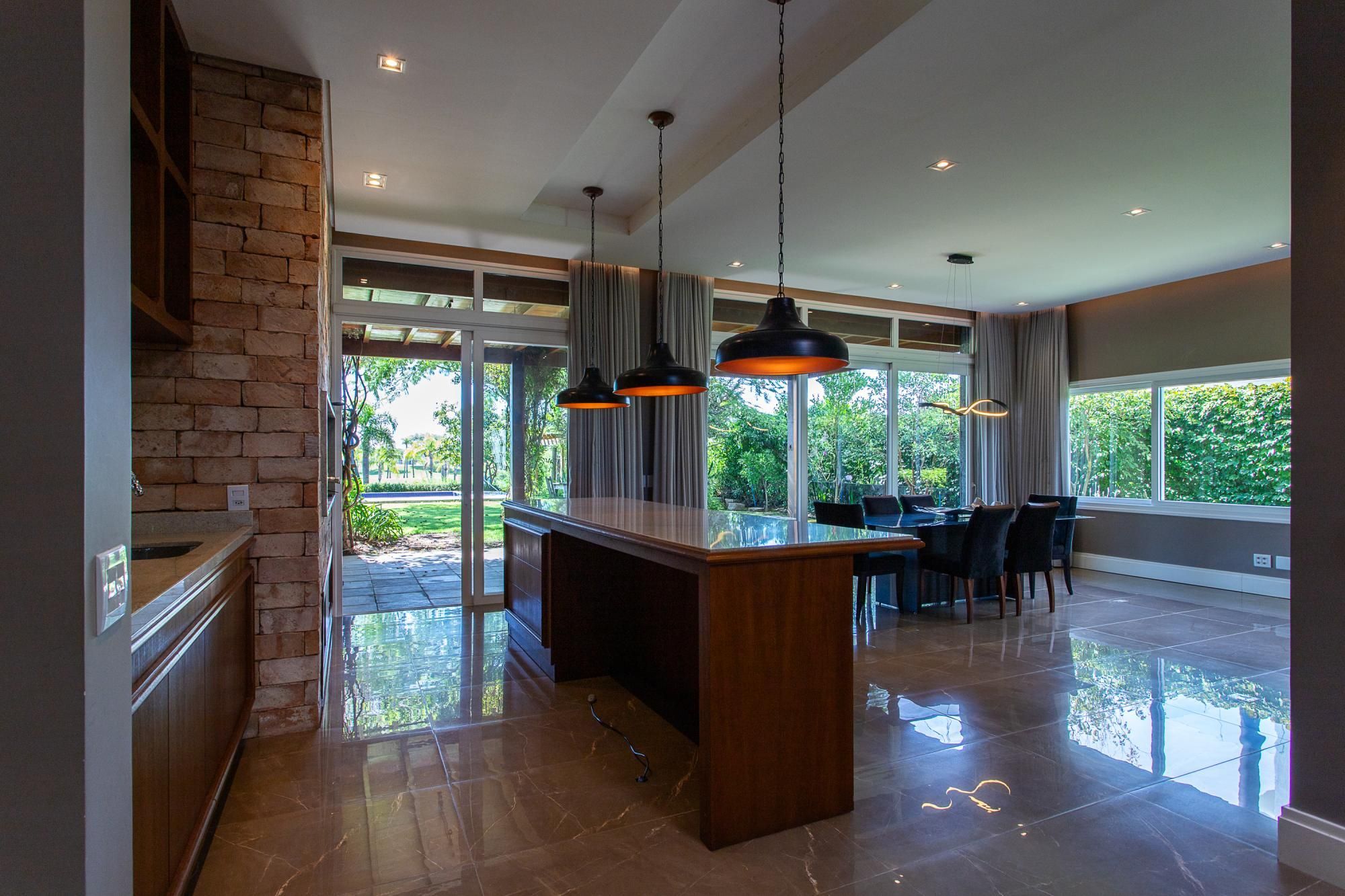 Casa em Condomínio no Terra Ville com área privativa 570com 4 suítes com vista definida ,Pé-direito duplo e lareira ,Cozinha com passa-prato e espaço gourmet ,Living com 3 ambientes integrados, Piscina, pomar e pátio com paisagismo, Adega climatizada e escritório privativo, Vista definitiva para o lago e campo de golfe .
