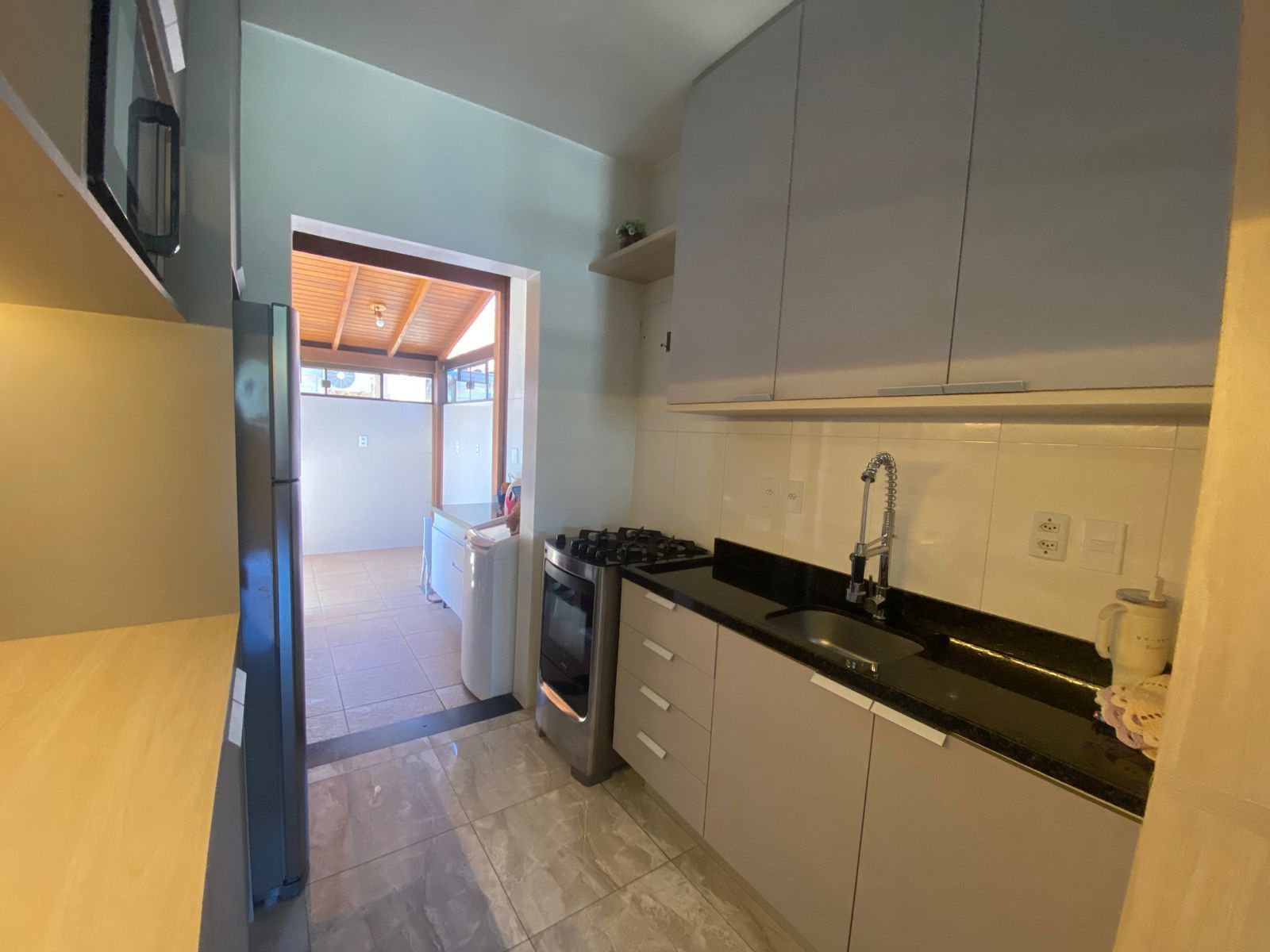 Ao entrar, você será recebido por uma espaçosa sala de estar, perfeita para reunir amigos e familiares. A cozinha americana, equipada com armários planejados, proporciona um ambiente aconchegante para preparar suas refeições. Além disso, o imóvel conta com aquecimento a gás, ar condicionado e uma charmosa churrasqueira, ideal para momentos de lazer e descontração.