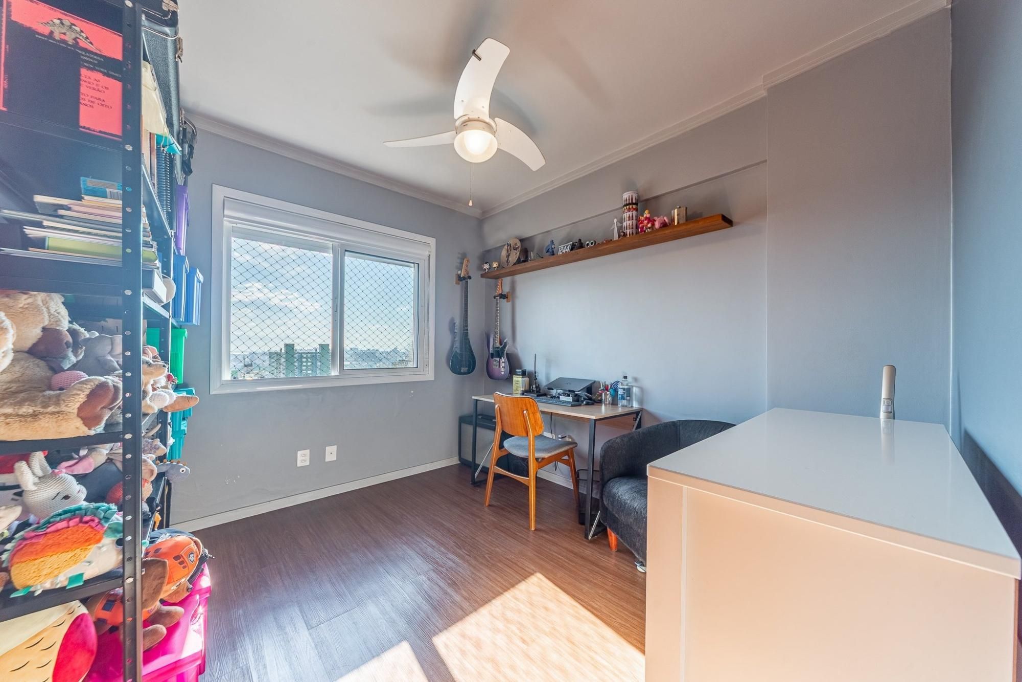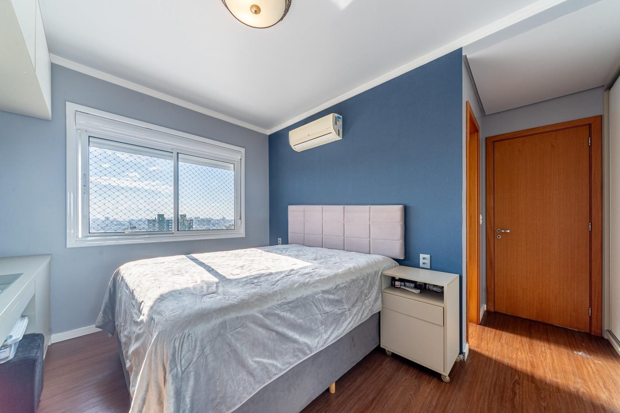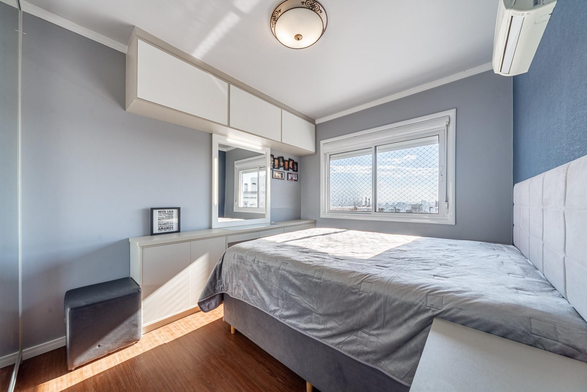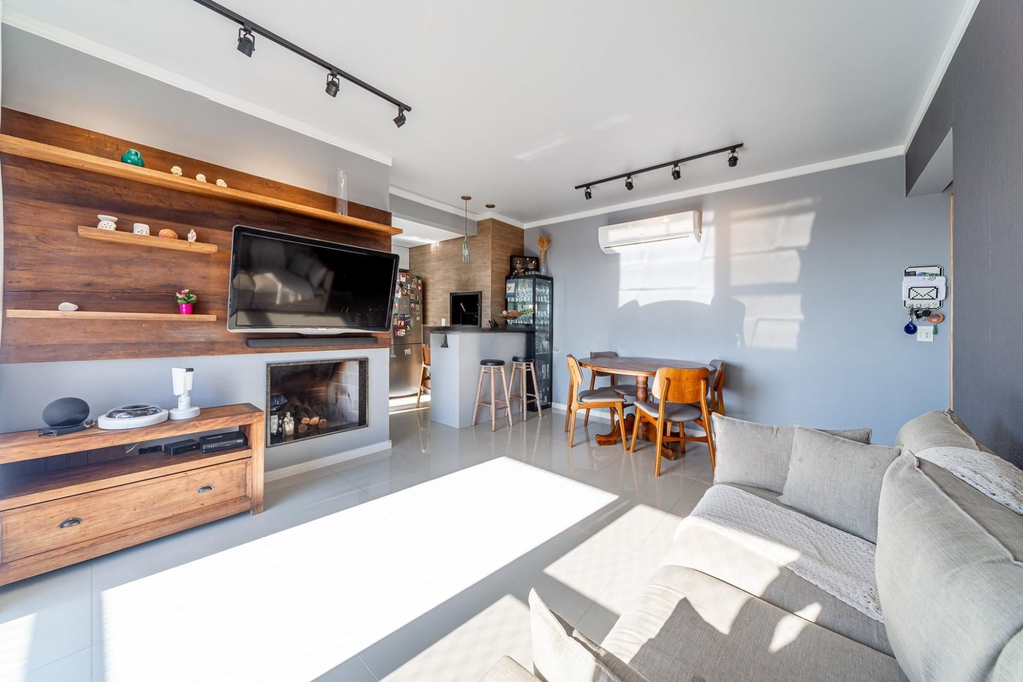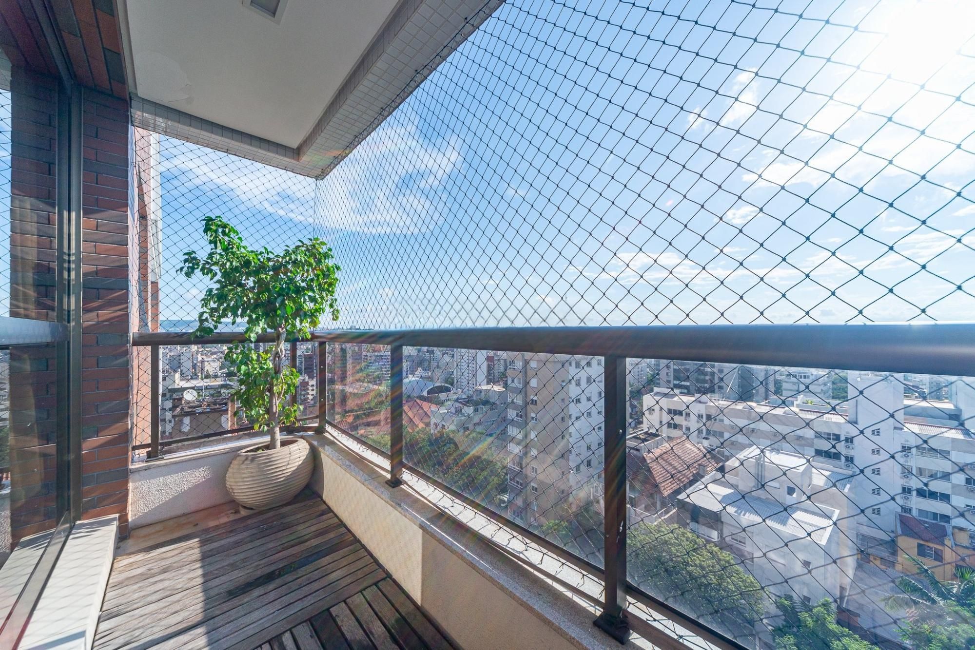 Apartamento de 2 quartos com 2 vagas de garagem à venda no bairro Petrópolis em Porto Alegre, com amplo living 2 ambientes com sacada e lareira, cozinha americana com churrasqueira, um dos dormitórios suíte e banheiro social. Infraestrutura do condomínio com portaria virtual, salão de festas, bicicletário, hall de entrada, jardim, elevador.