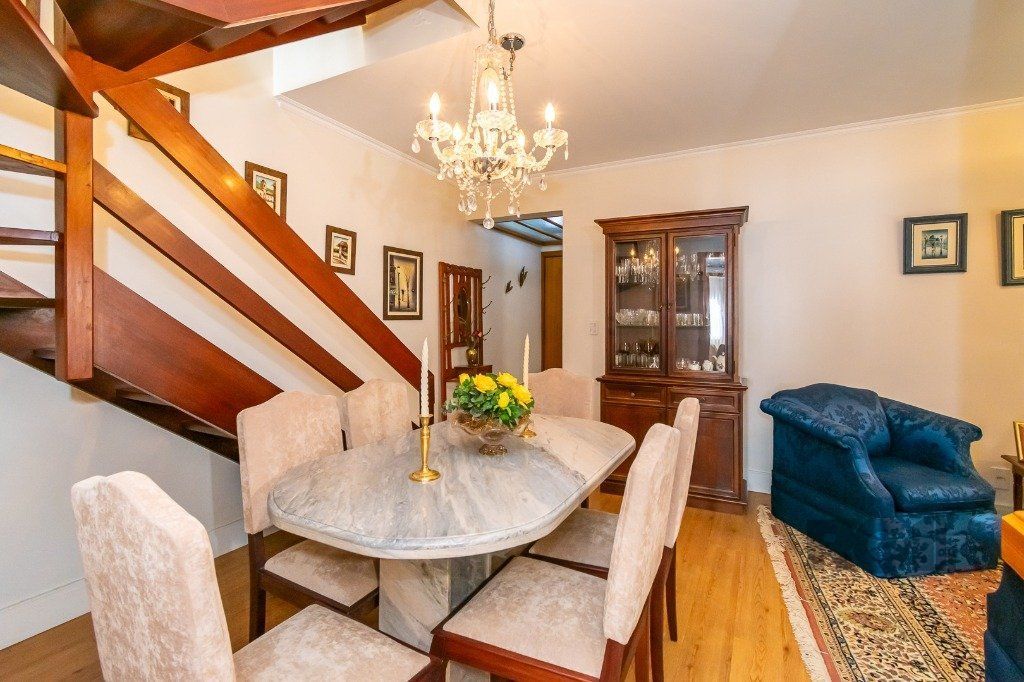 No andar inferior, temos 03 dormitórios, sendo um deles suíte, living de dois ambientes, copa-cozinha, área de serviço, dependência de empregada, banho social e auxiliar. 03 vagas de garagem com depósito. Condomínio possui elevador, salão de festas, zelador, gás central e câmeras. Aceita Financiamento.