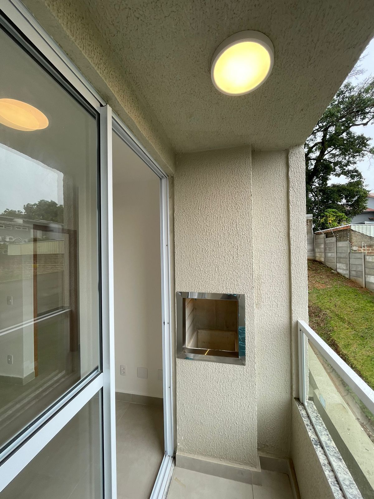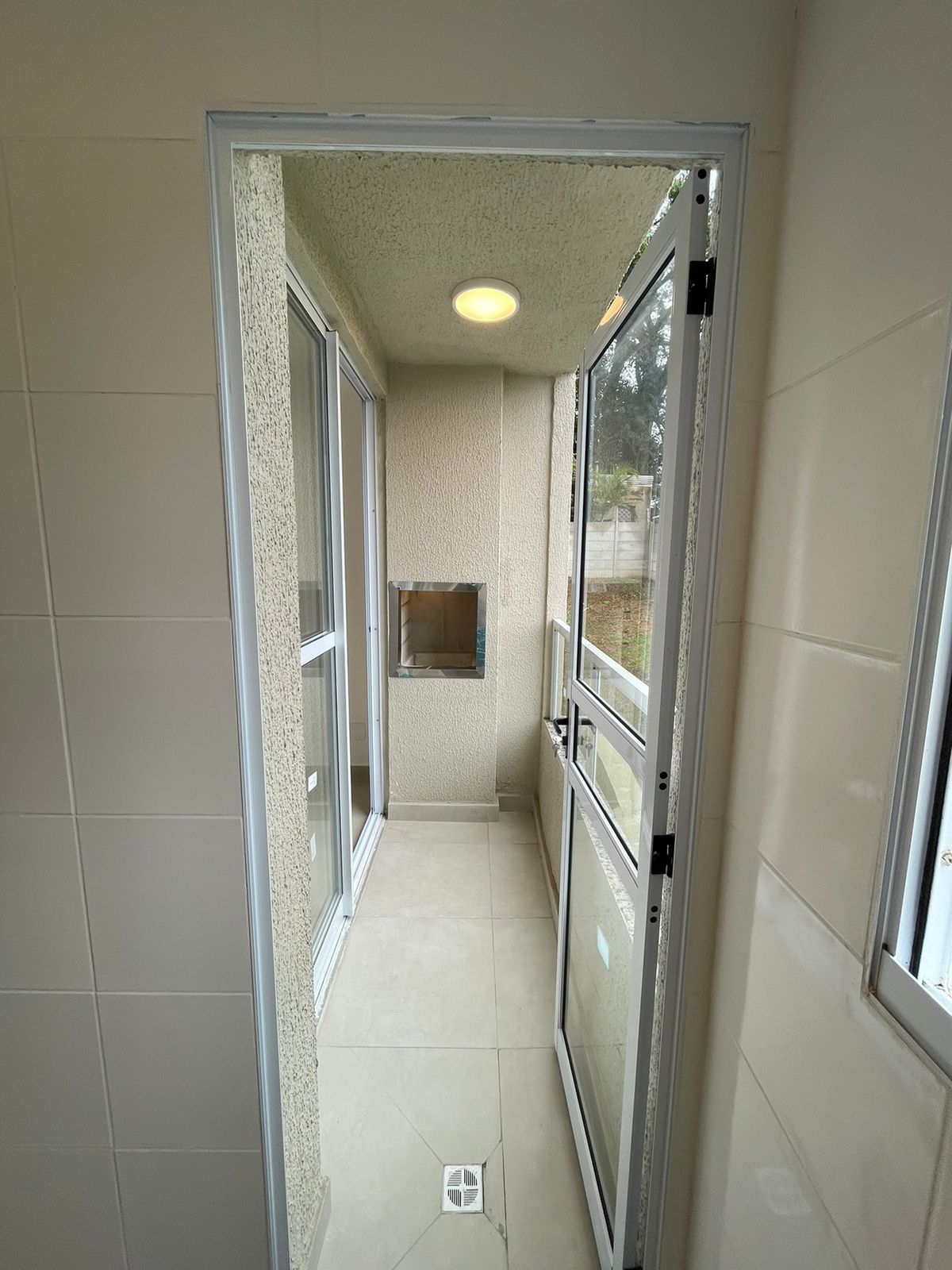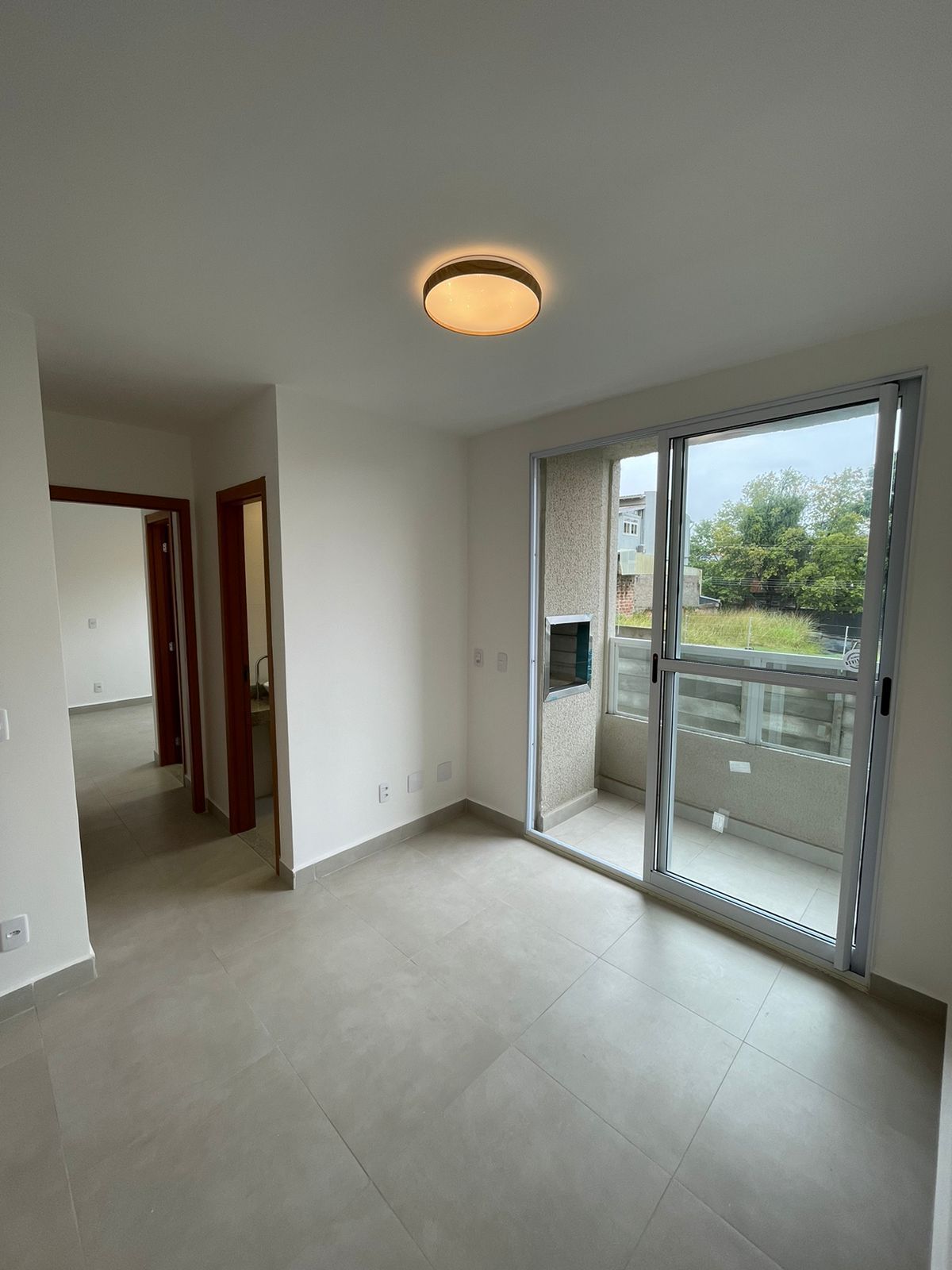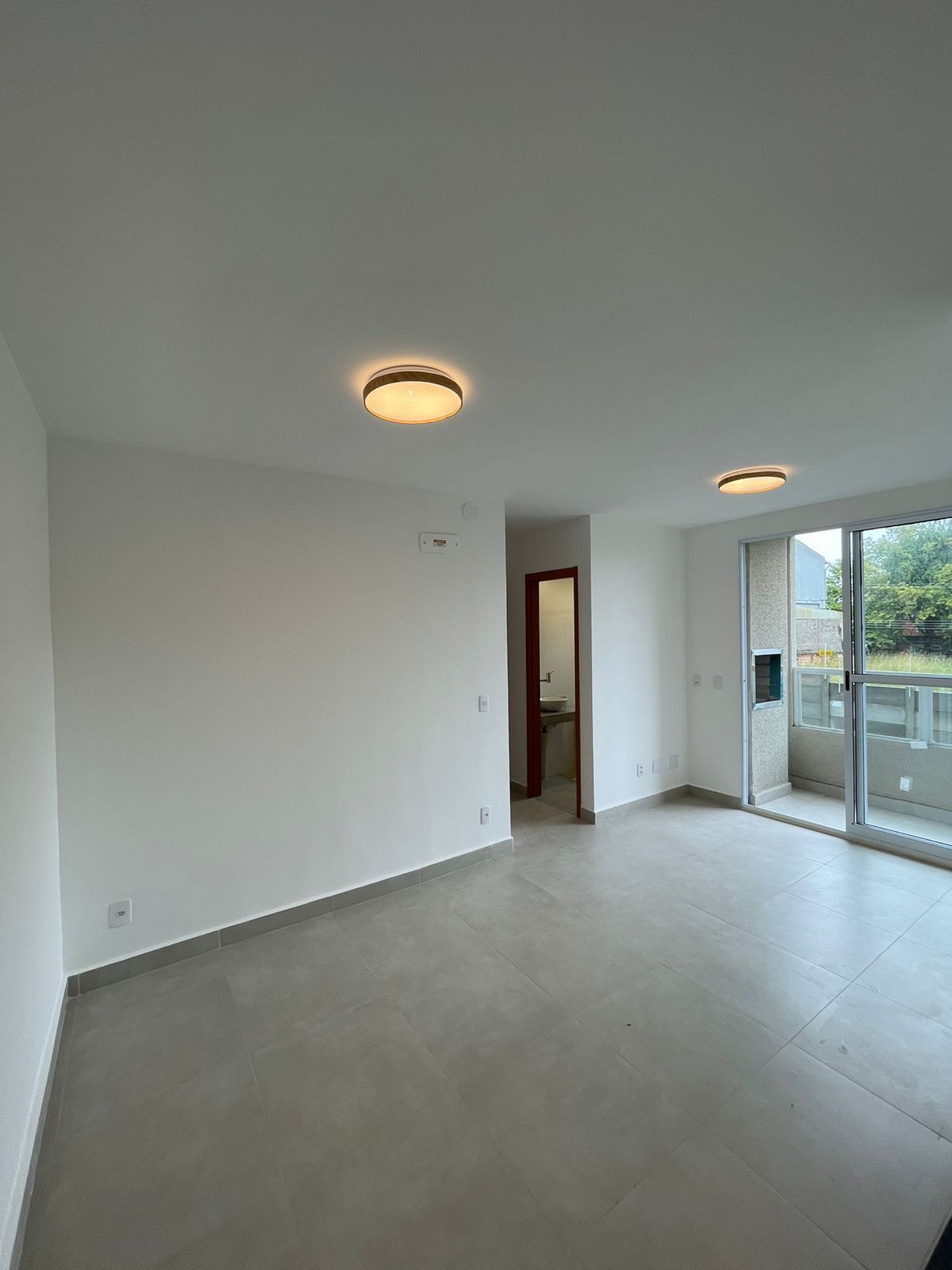 Sala ampla com sacada e churrasqueira