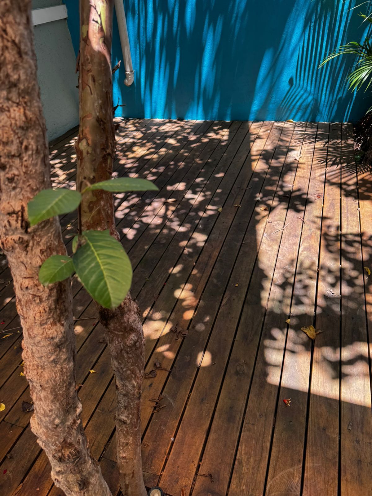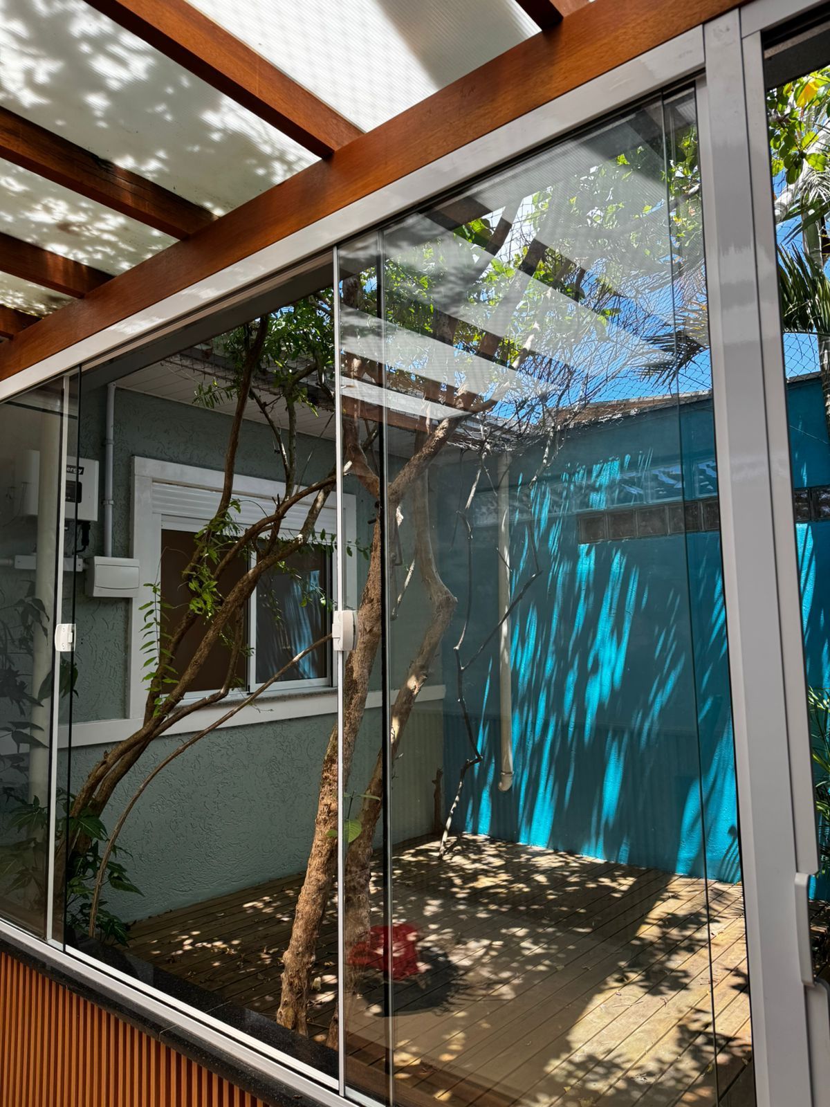 🌿 pátio interno com deck e árvores (estilo jardim de inverno)