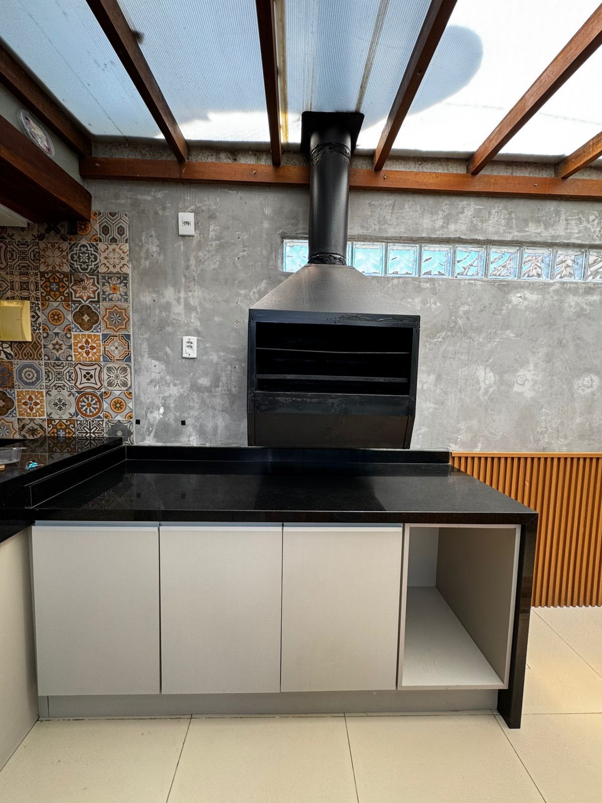 🔥 churrasqueira moderna com coifa metálica
