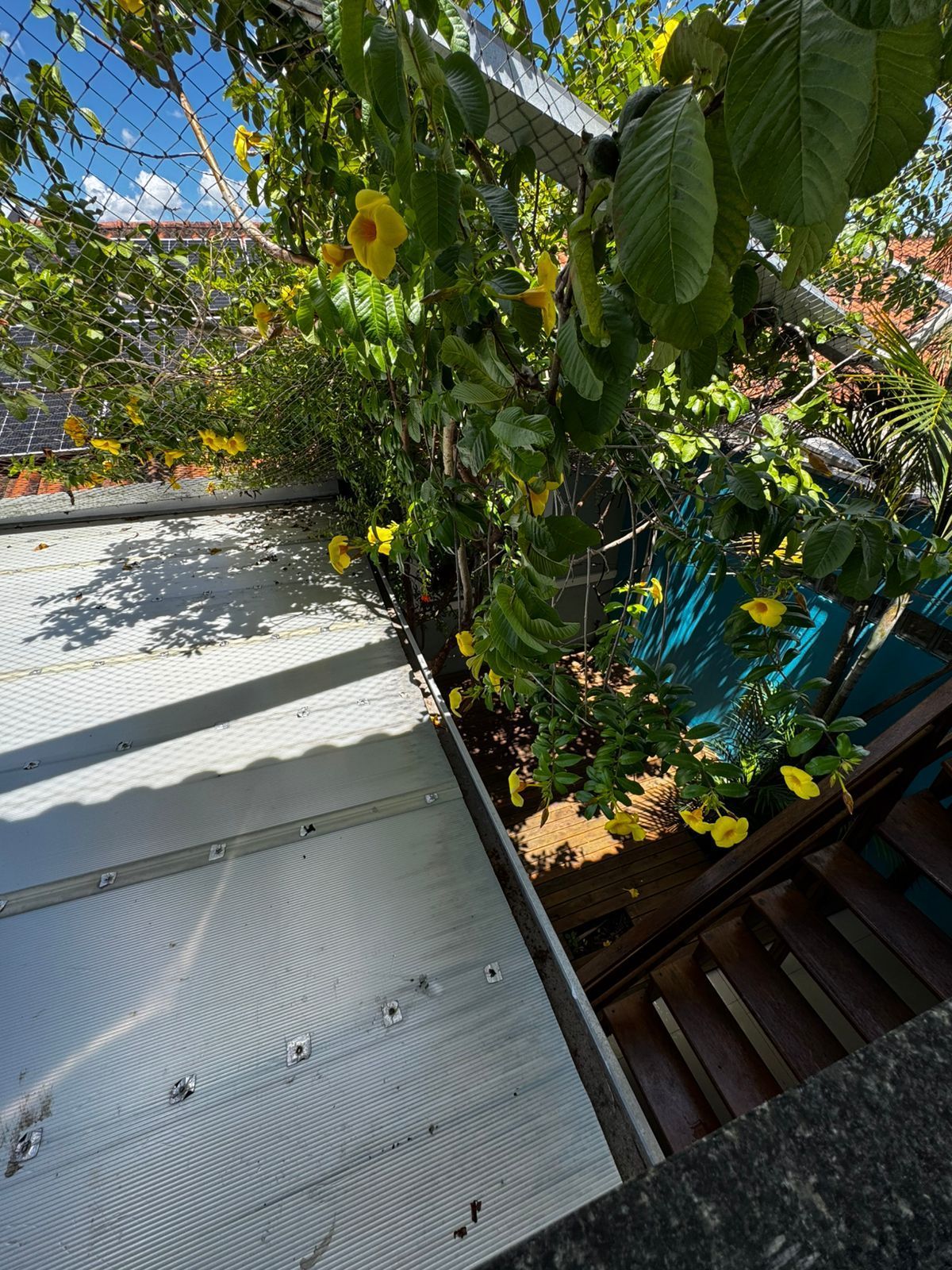 Totalmente telado, com deck de madeira, goiabeira e árvore de romã — um verdadeiro refúgio dentro de casa.