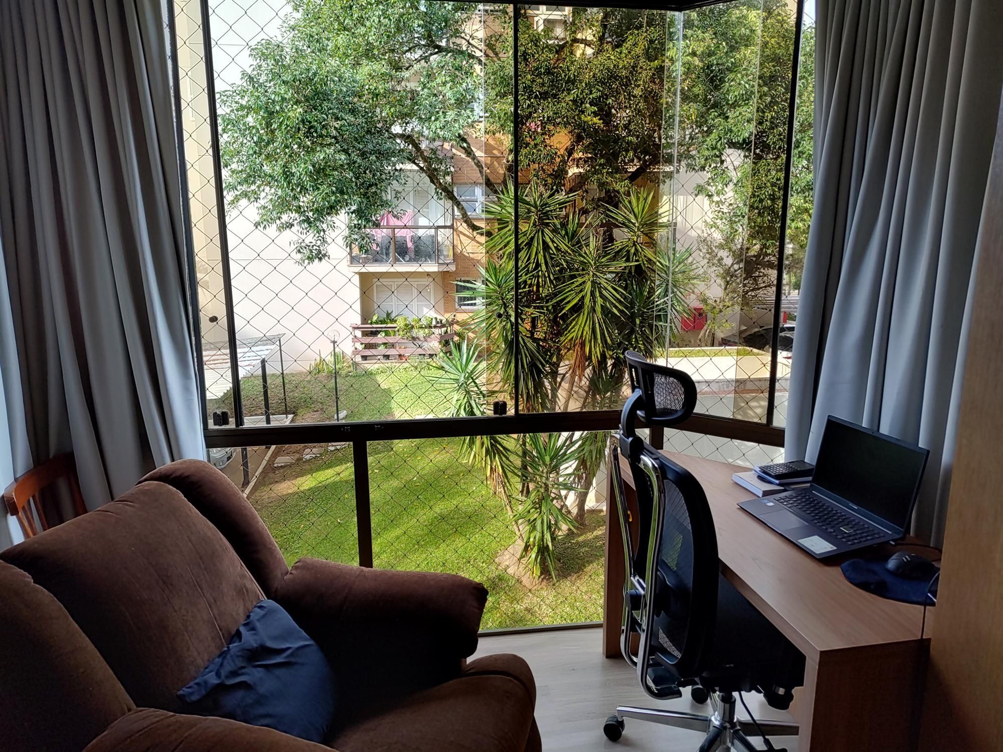 Apartamento semimobiliado de 64,10 m², 2 dormitórios, living para dois ambientes bem definidos, sacada integrada e fechada, cozinha e lavanderia com marcenaria sob medida, banheiro com ventilação natural.